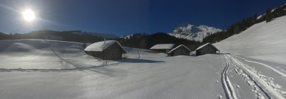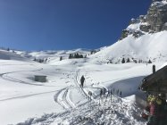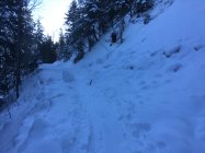 Parkplatz um 08.30 Uhr schon voll (es haben aber auch nur wenige Autos Platz) Die Waldstrasse ist gut eingeschneit. Ab Fluonalp konnte man verschiedenen Aufstiegsspuren folgen - z.T waren sie recht steil angelegt.