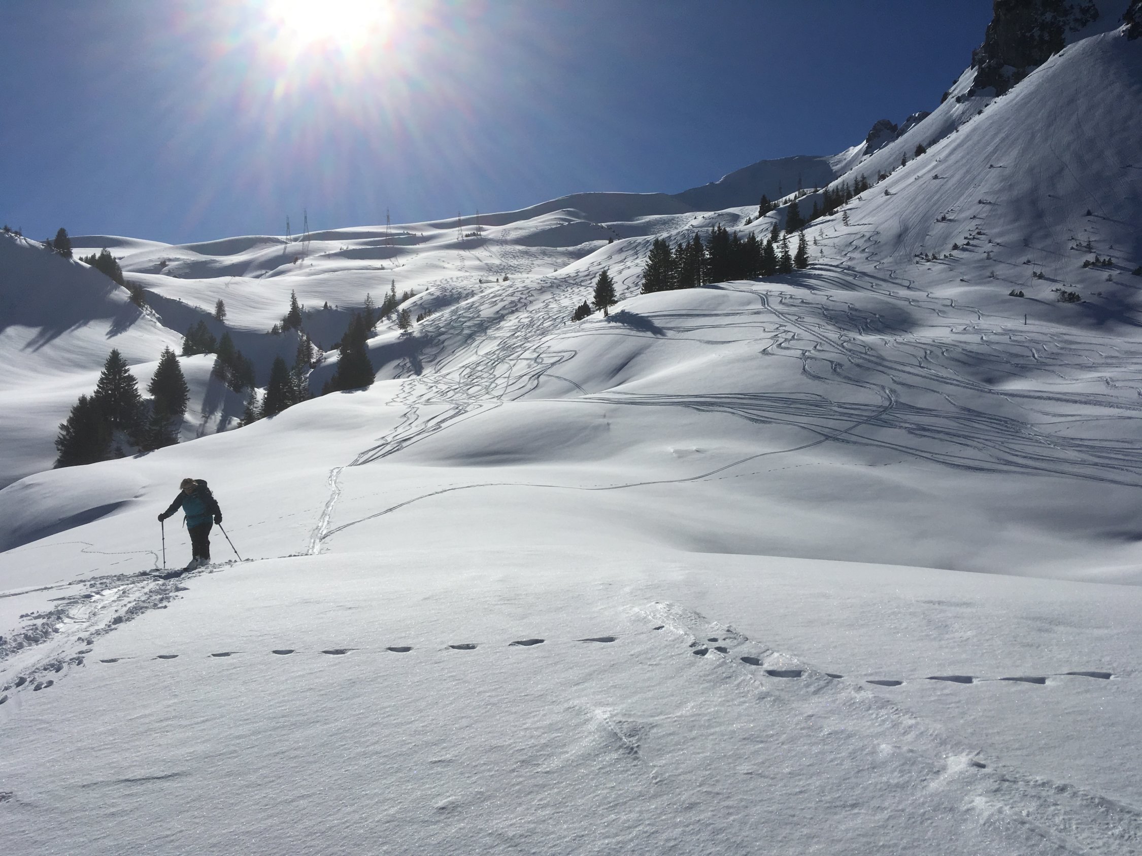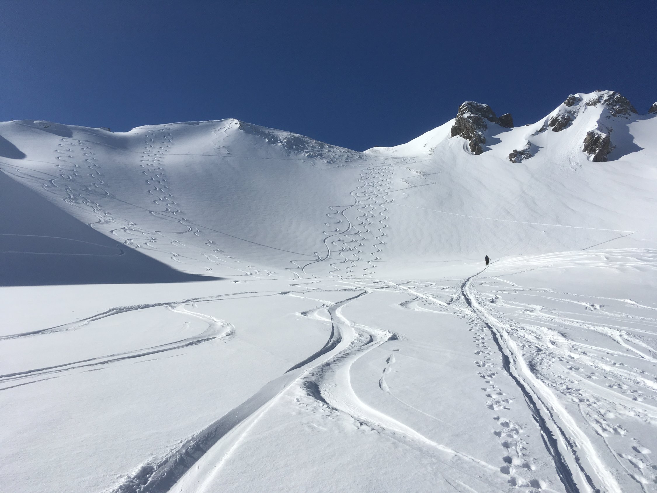 Für die Abfahrt gab es noch genug Platz für eigene Linien in schönem Pulver!