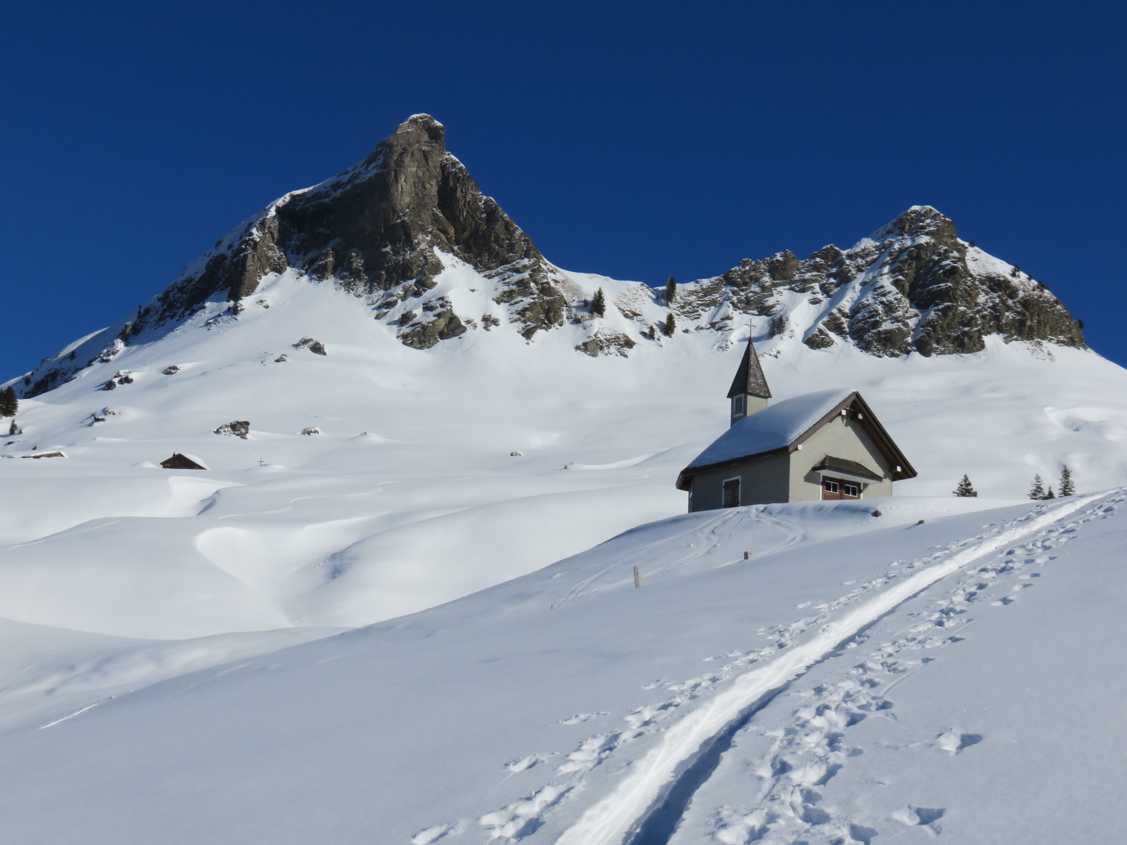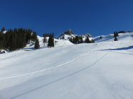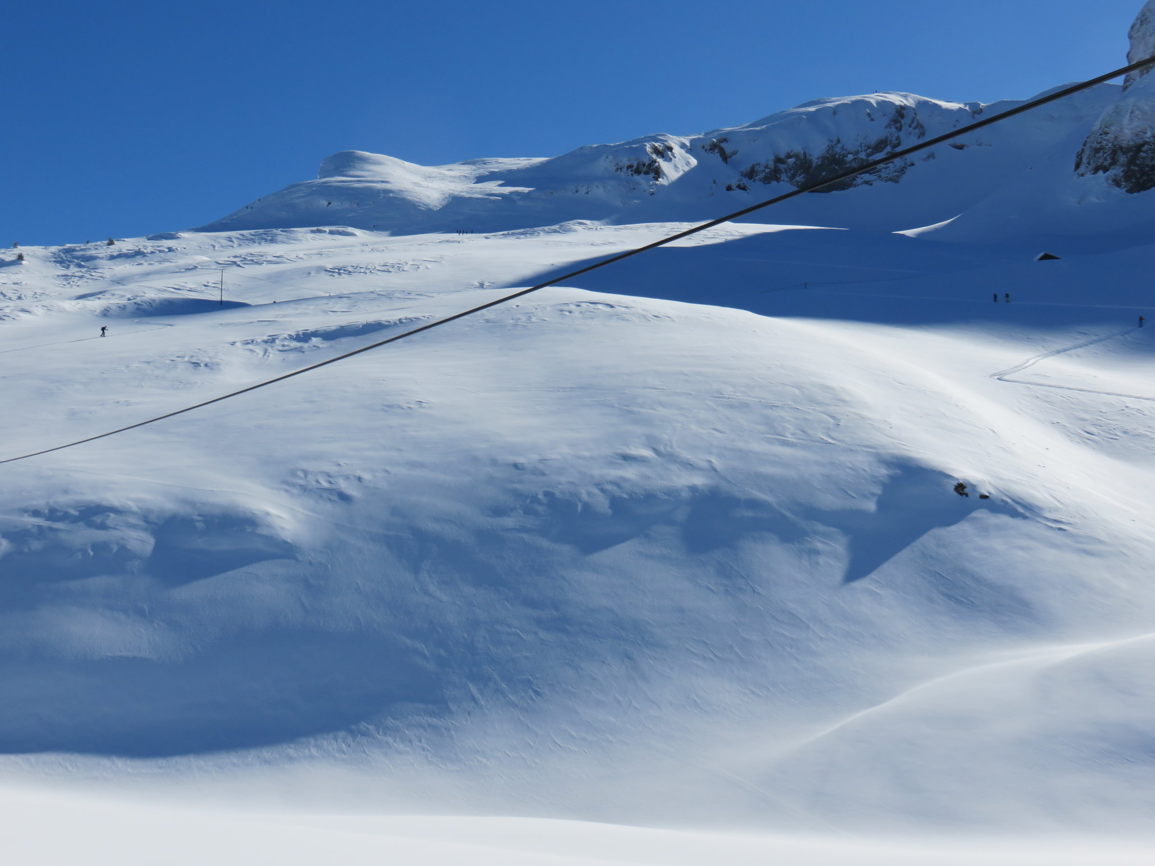 Es liegt genügend Schnee. Die Strasse ist gewalzt bis zur Druesberg-Hüttte.