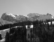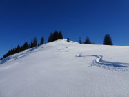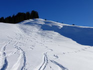 Schöner leicht fahrbarer Schnee auf, je nach Hangexposition gut bis sehr gut tragender Unterlage. Am Besten waren die schattseitige und nicht zu steile Hänge, wo man wenig Kantendruck geben musste. Beachtet man das Gelände gut, wird die Fahrt zum Hochgenuss.