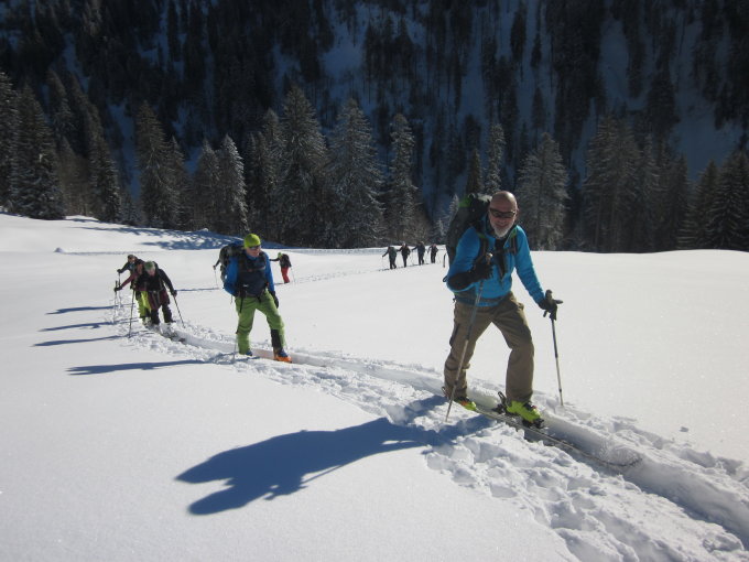 Allerbeste Verhältnisse bei Traumwetter. Pulverschnee der besten Sorte in der NO-Abfahrt zur Siplinger Alpe, deshalb 2 mal abgefahren und wieder aufgestiegen. Südseitig bei der Talabfahrt nach Balderschwang leicht angefeuchteter Schnee, aber immer noch schön zu fahren.