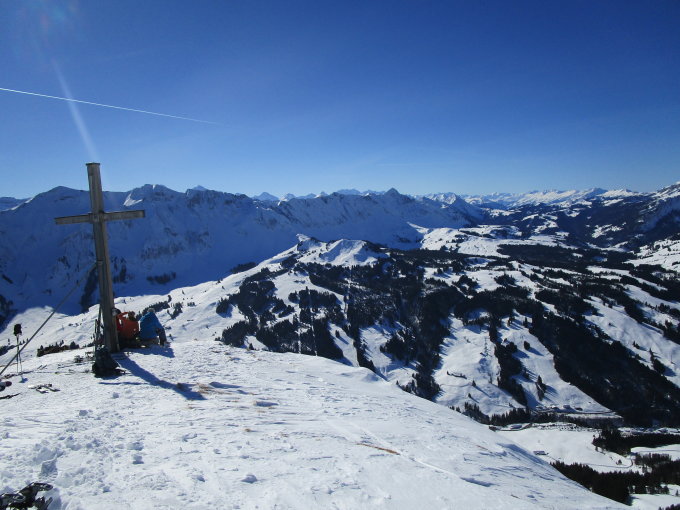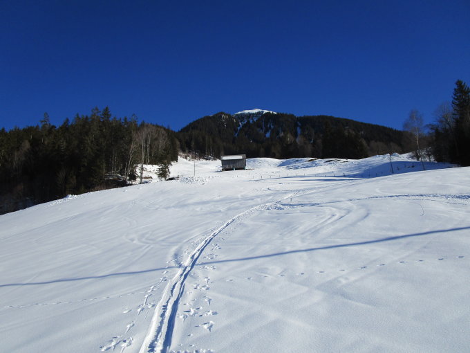 Von unten bis oben noch gute Schneeverhältnisse, an den sonnseitigen Hängen unterhalb 1500m wird der Schnee bei diesen Temperaturen rasch weniger oder faul, heute noch recht gut.