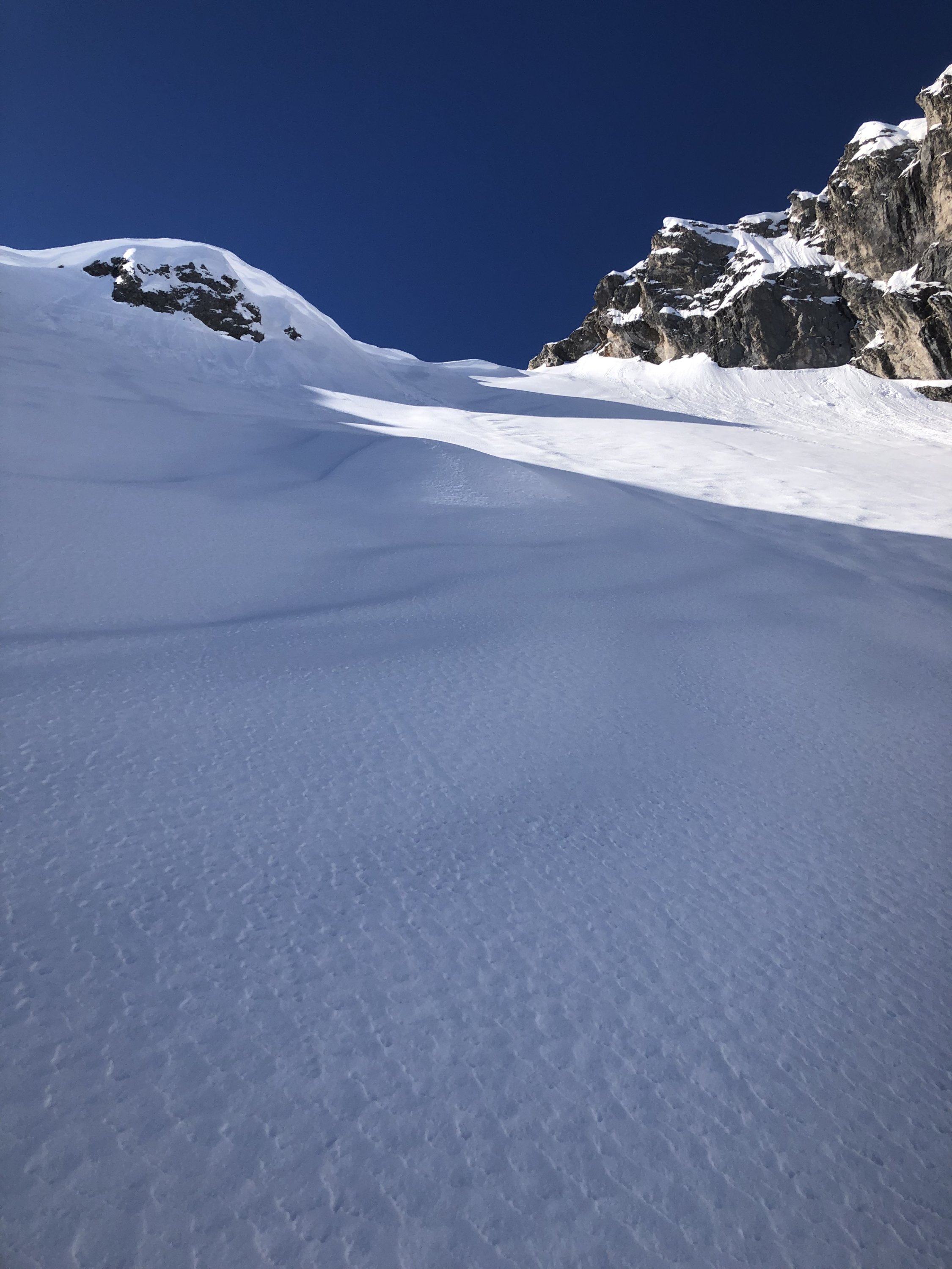 Ganze Route perfekte Verhältnisse mit sehr viel Pulverschnee! Ab Wildgrimmi noch keine Aufstiegsspuren. Da werden vermutlich bis Sonntag noch einige Spuren dazu kommen!!