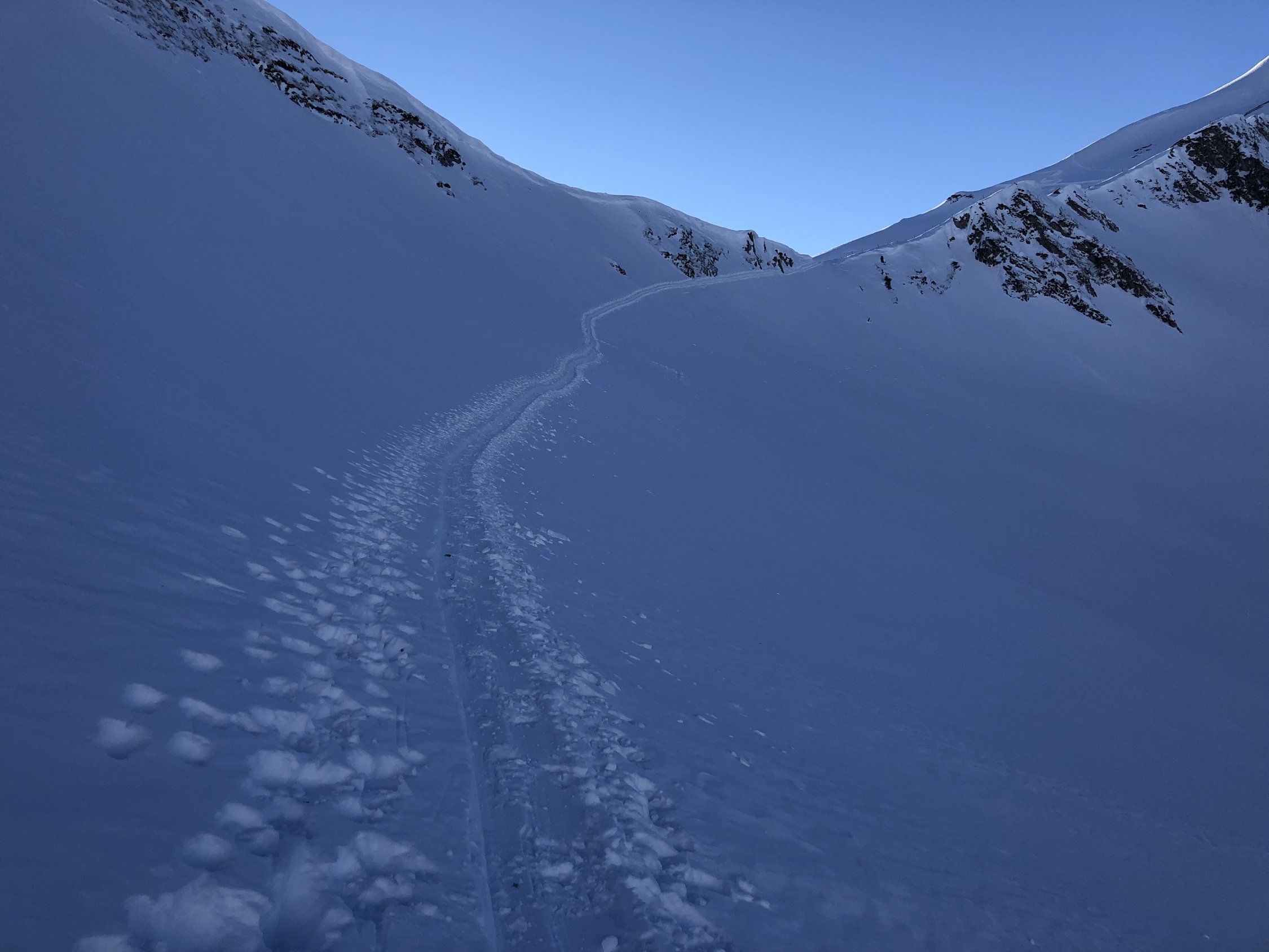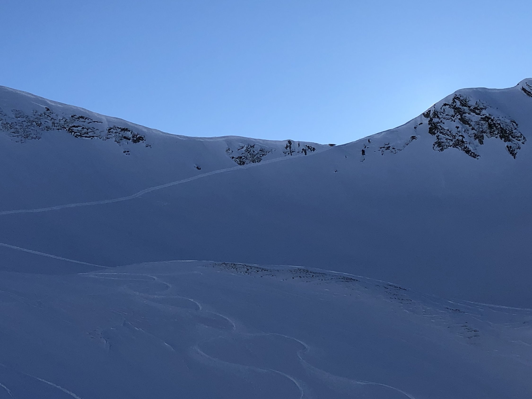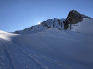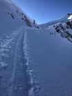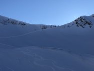 Südseite, sehr wenig Spuren, aber zum Teil Lawinenniedergänge.