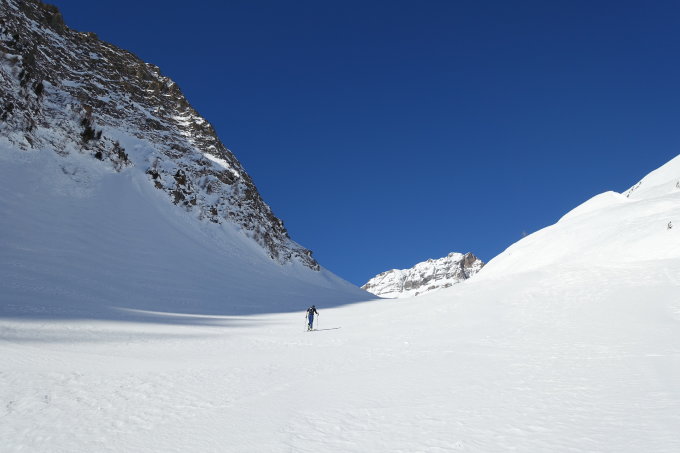 Start in Kippel um 8:30 - der Schnee im Wald und bis oberhalb der Chummenalp ist noch schön hart und griffig. Es sind daher keine Harscheisen notwendig. Beim Aufschwung Zem Tritt ist etwas eingeblasen, jedoch mit einer vorsichtigen Routenwahl machbar. Das Tal obers Färda wunderschön einsam und im Aufstieg wie in der Abfahrt ein Traum. Ab dem Ferdenpass fast durchgehend abgeblasener Schnee. Eine kurze Tragepassage bis auf den Skigipfel. Den Hauptgipfel haben wir nicht gespurt. Danke an den spurenden Herrn aus Bern, welcher bis auf den Ferdenpass eine tolle Linie gezogen hat.