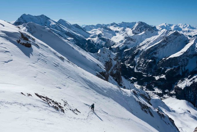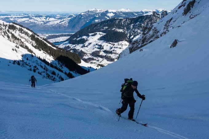 Abfahrt vom Ärmigchnubel top, wird nicht besser; Rücken zum Ärmighore braucht Schnee ohne Wind.