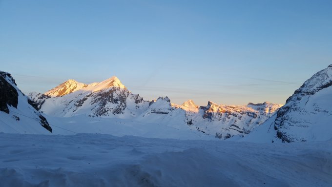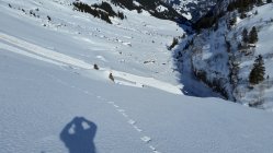 Route von rote Totz-Lücke durchs Üschinental hatte noch keine durchgehende Spur, entsprechend schöne "jungfräuliche" Schneelandschaft vorgefunden. Erst ab Sulzweng Spuren von Wissy Fluh herkommend.
