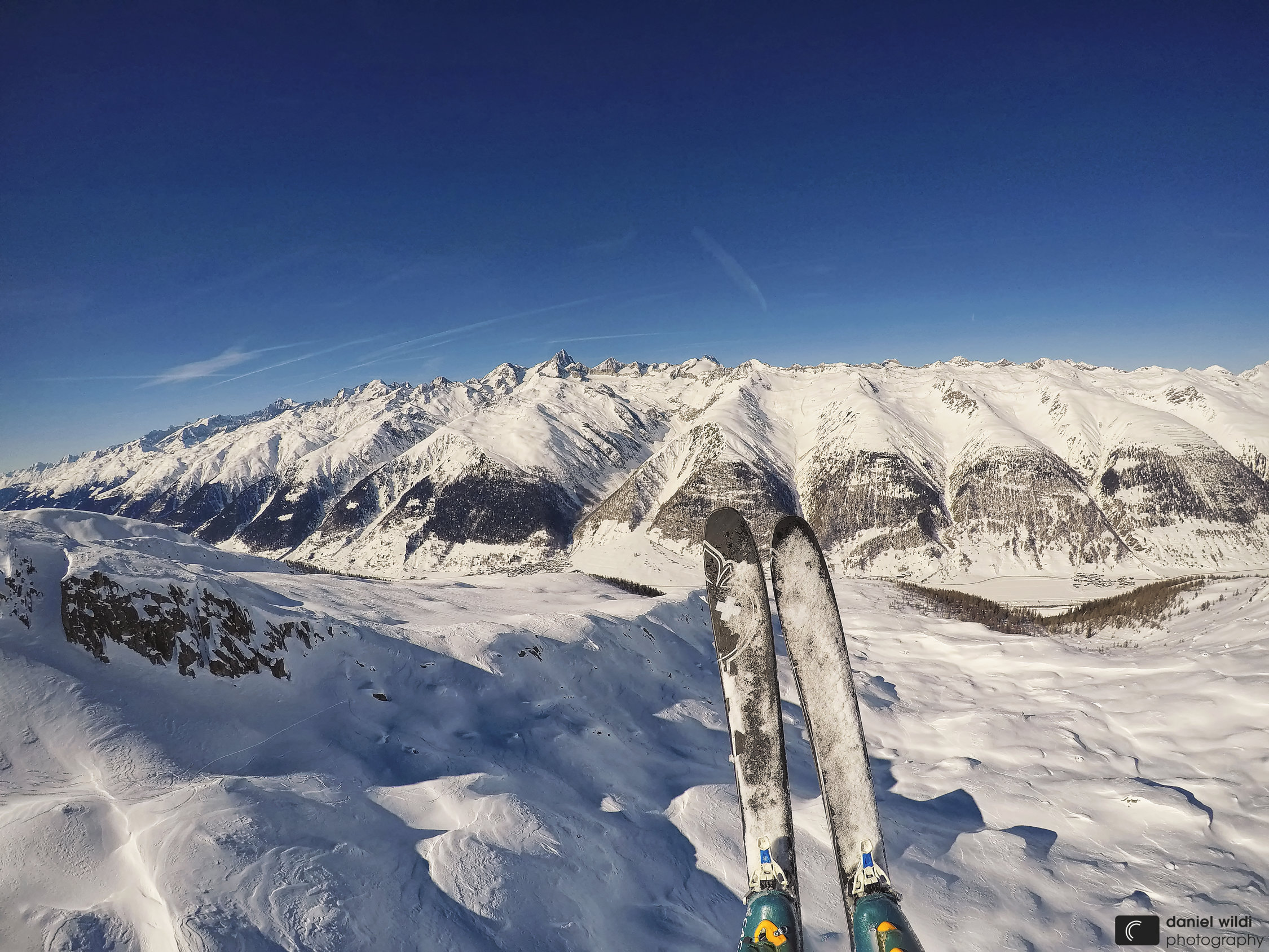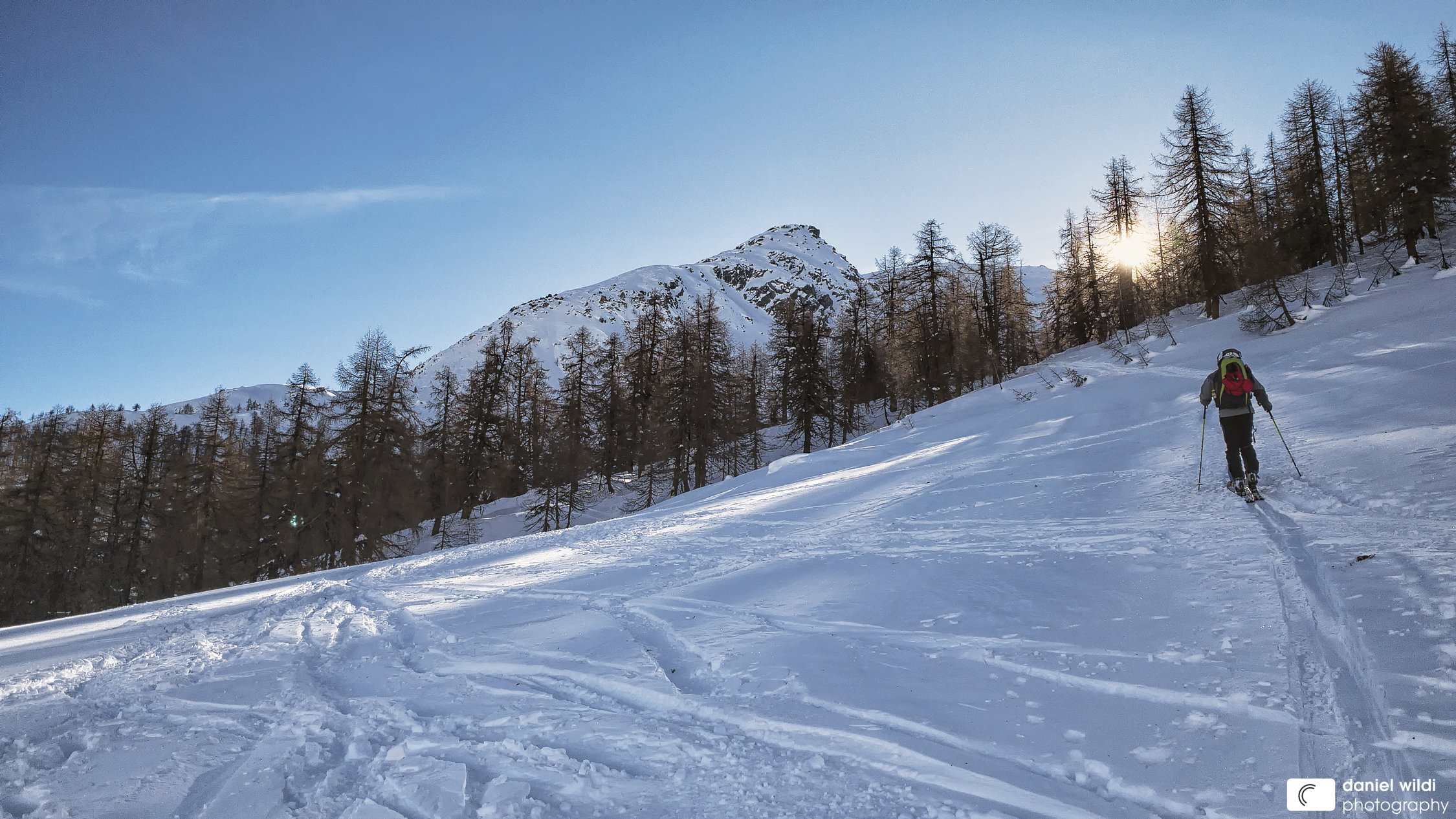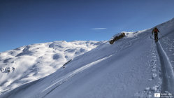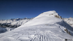 Gute Verhältnisse, in der oberen Hälfte z.T. noch schöner Pulver, z.T. leicht gedeckelt aber dank Nordseite weniger angesulzt.Gipfelhang abgeblasen/gpresst...
