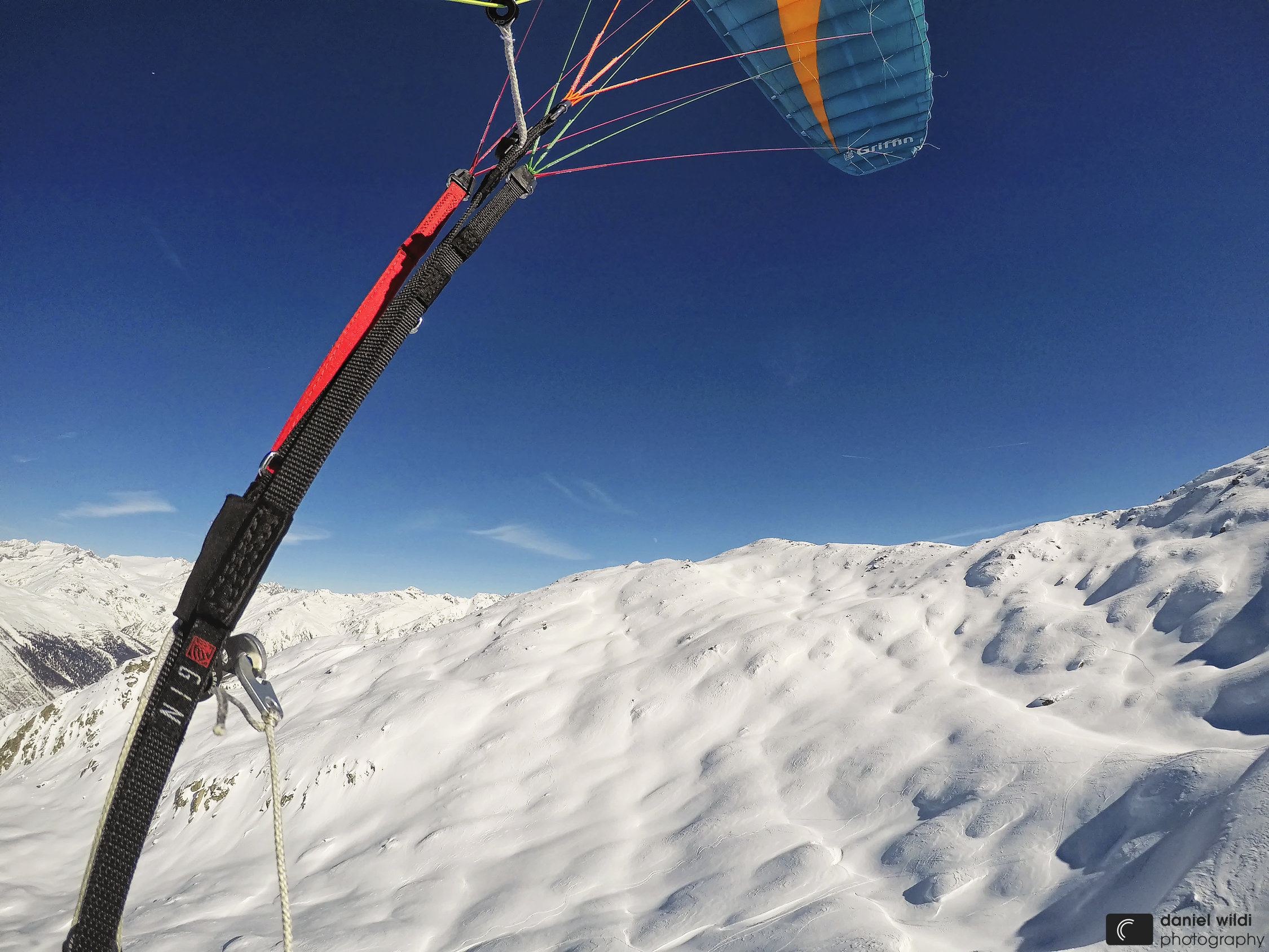 Vom Distelgrat mit dem Gleitschrim runter nach Geschinen.