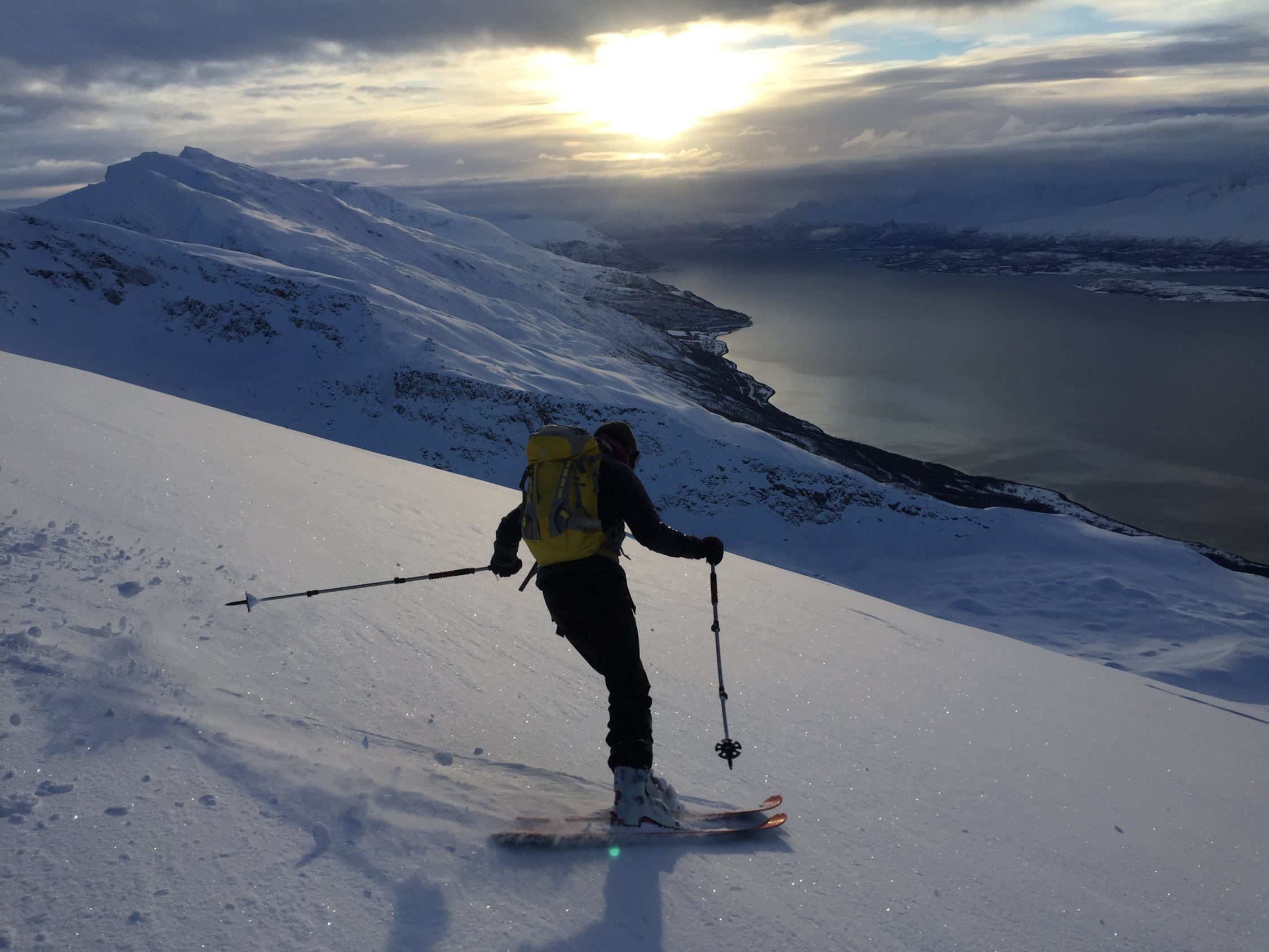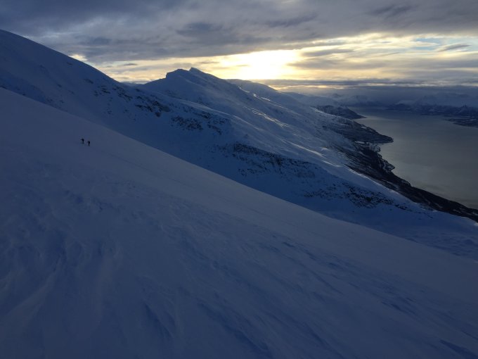 10-20 cm Neuschnee in den windabgewandten Seiten - der Storhaugen war heute eine gute Wahl.