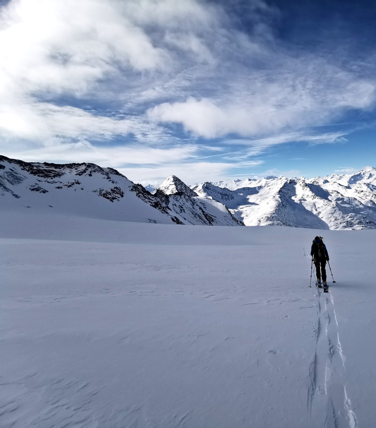 Die Querung zum Skidepot ist zur Zeit Blank.. Man muss sehr weit Richtung Wilder Pfaff gehen. Vorsicht ein paar nur leicht verdeckte Spalten sind vorhanden!