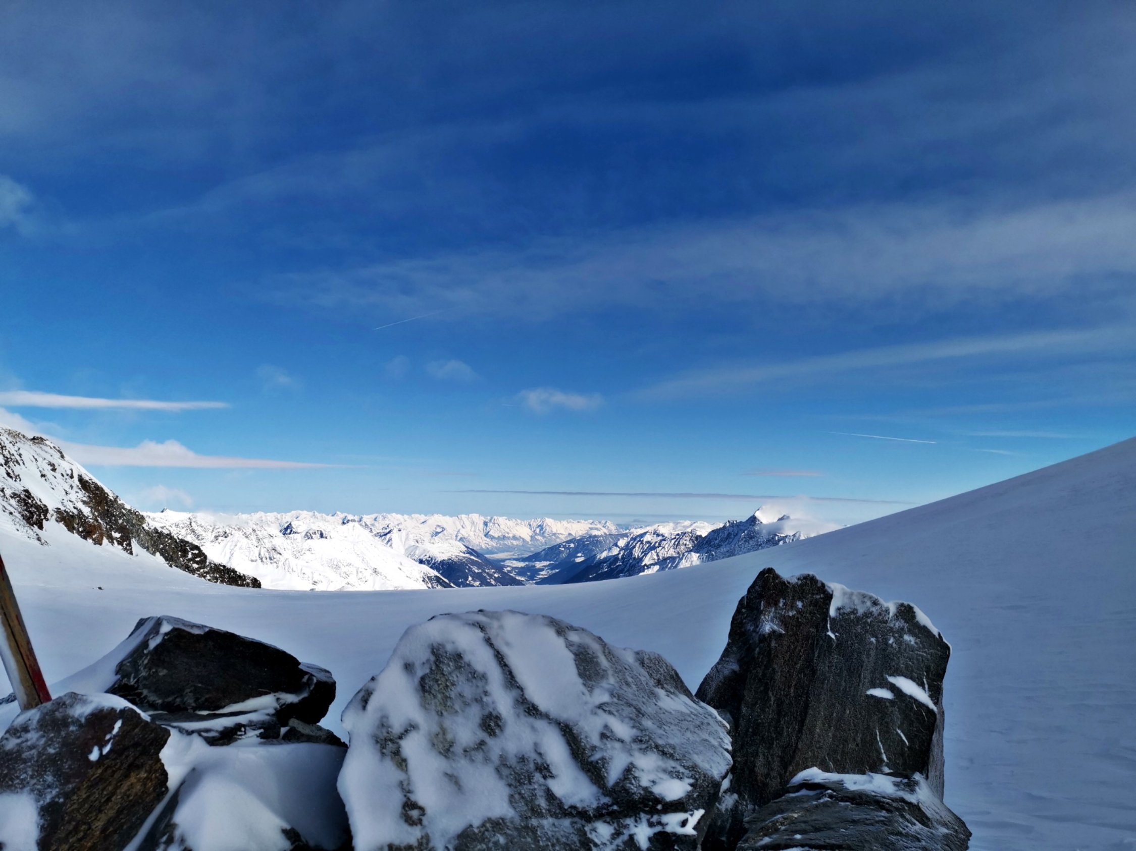 Bis zum Pfaffenjoch ist der Schnee einigermaßen ok. Ab dem Sulzenauferner ist der Schnee rein Fahrtechnisch einfach nur Katastrophal,(Extrem Windgepresste Wellen) Der Gipfelanstieg ist im unteren und mittleren Teil Bock Hart zum gehen. Ohne Steigeisen und Pickel nicht ratsam.