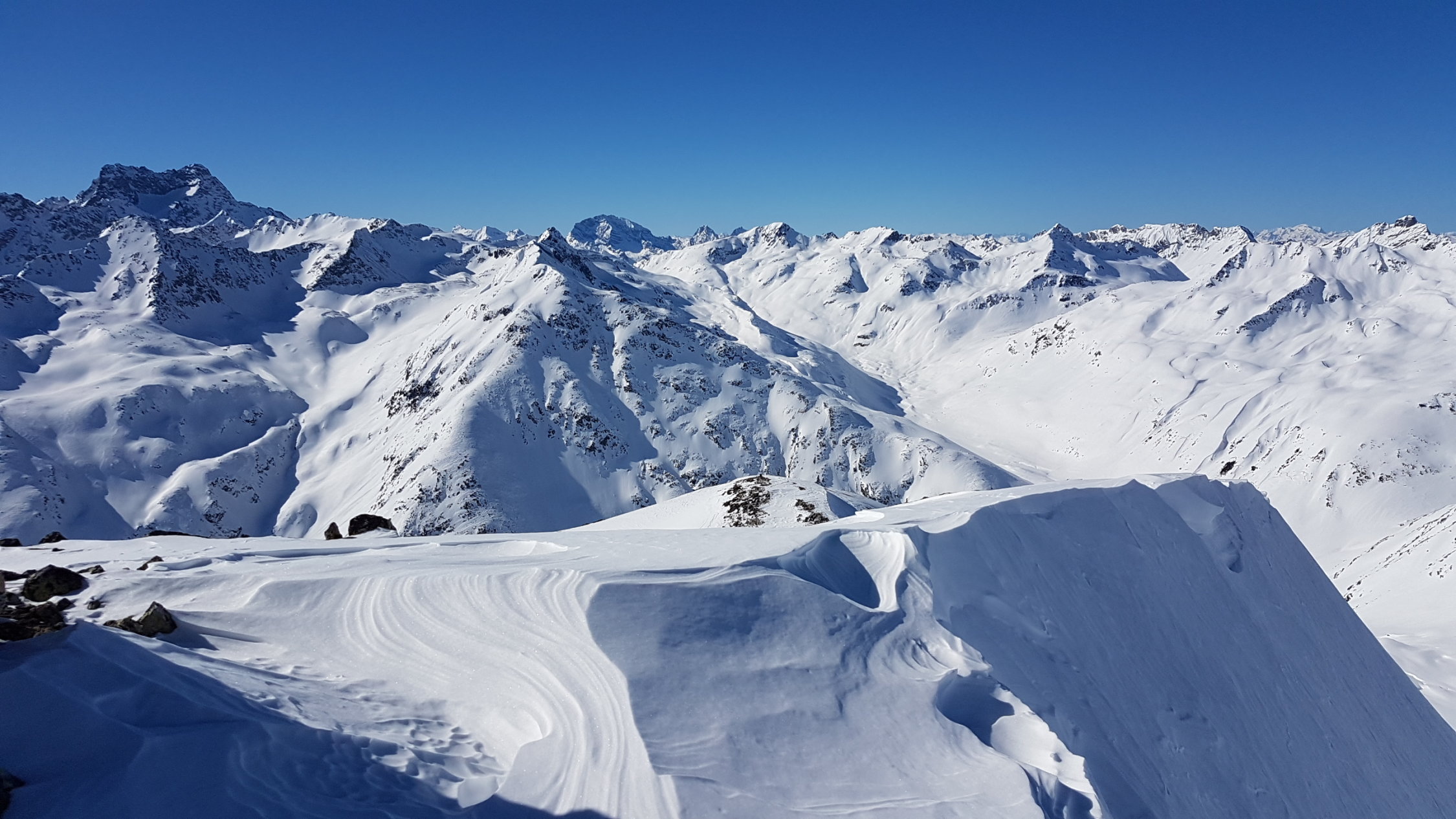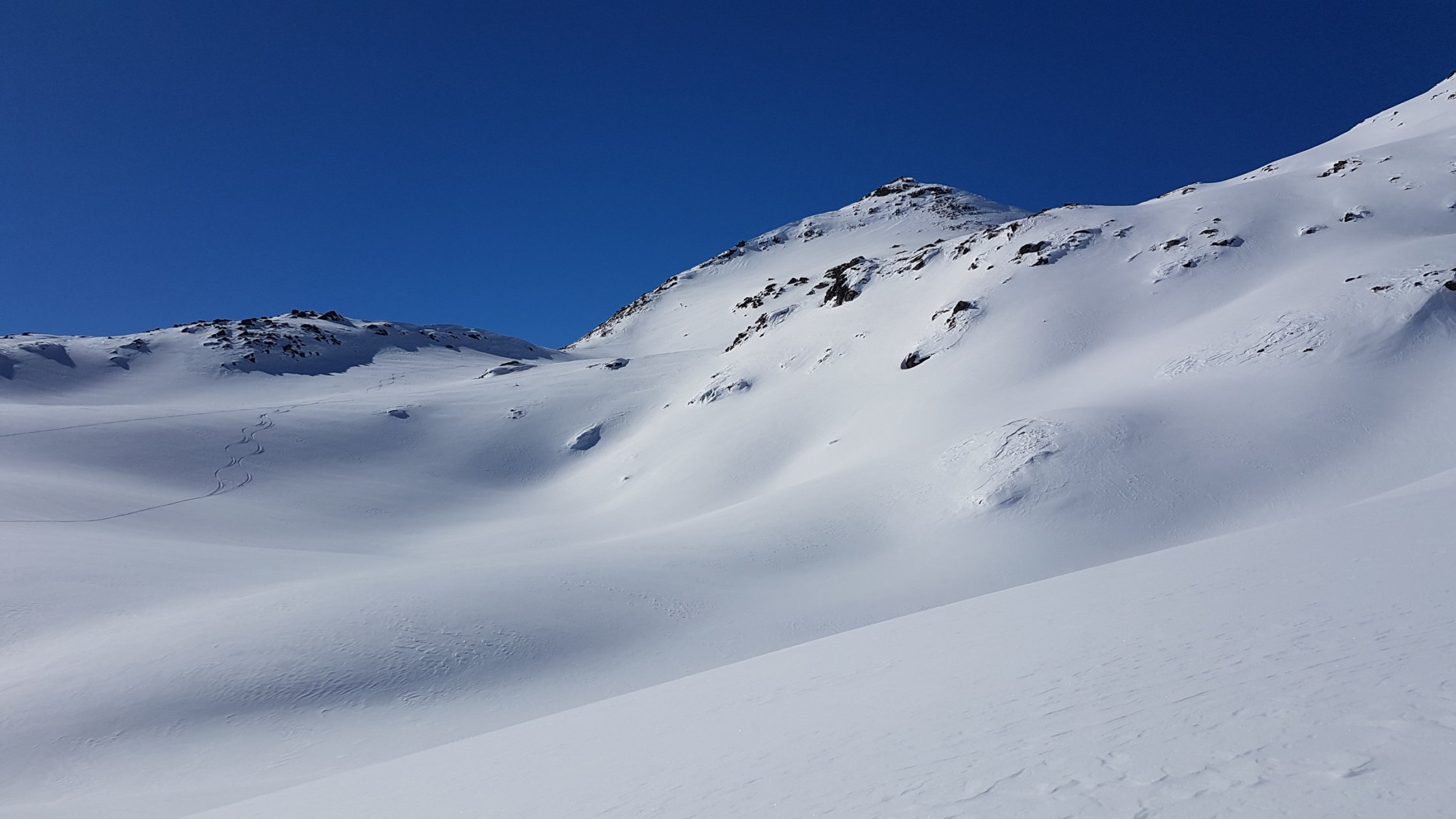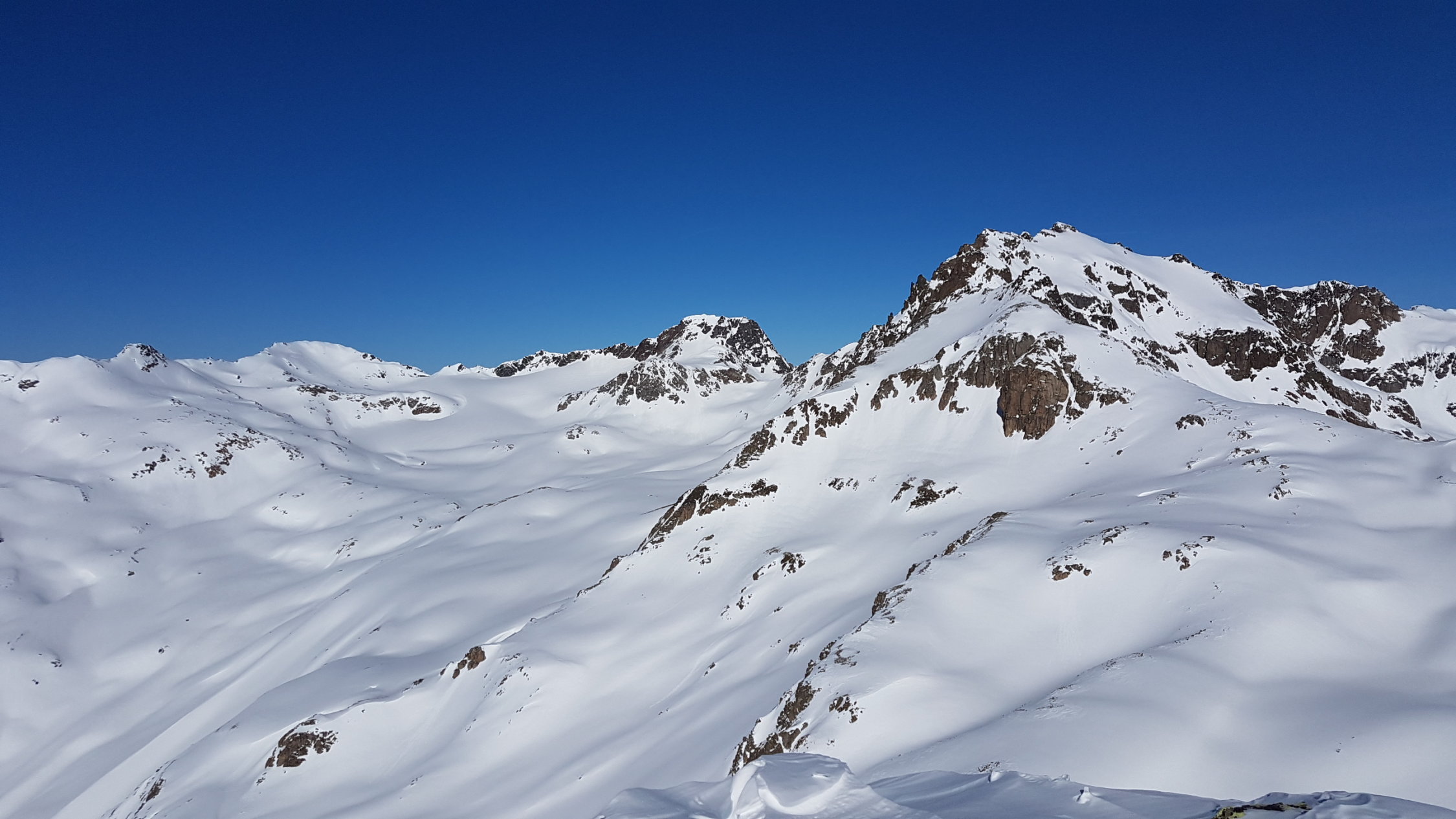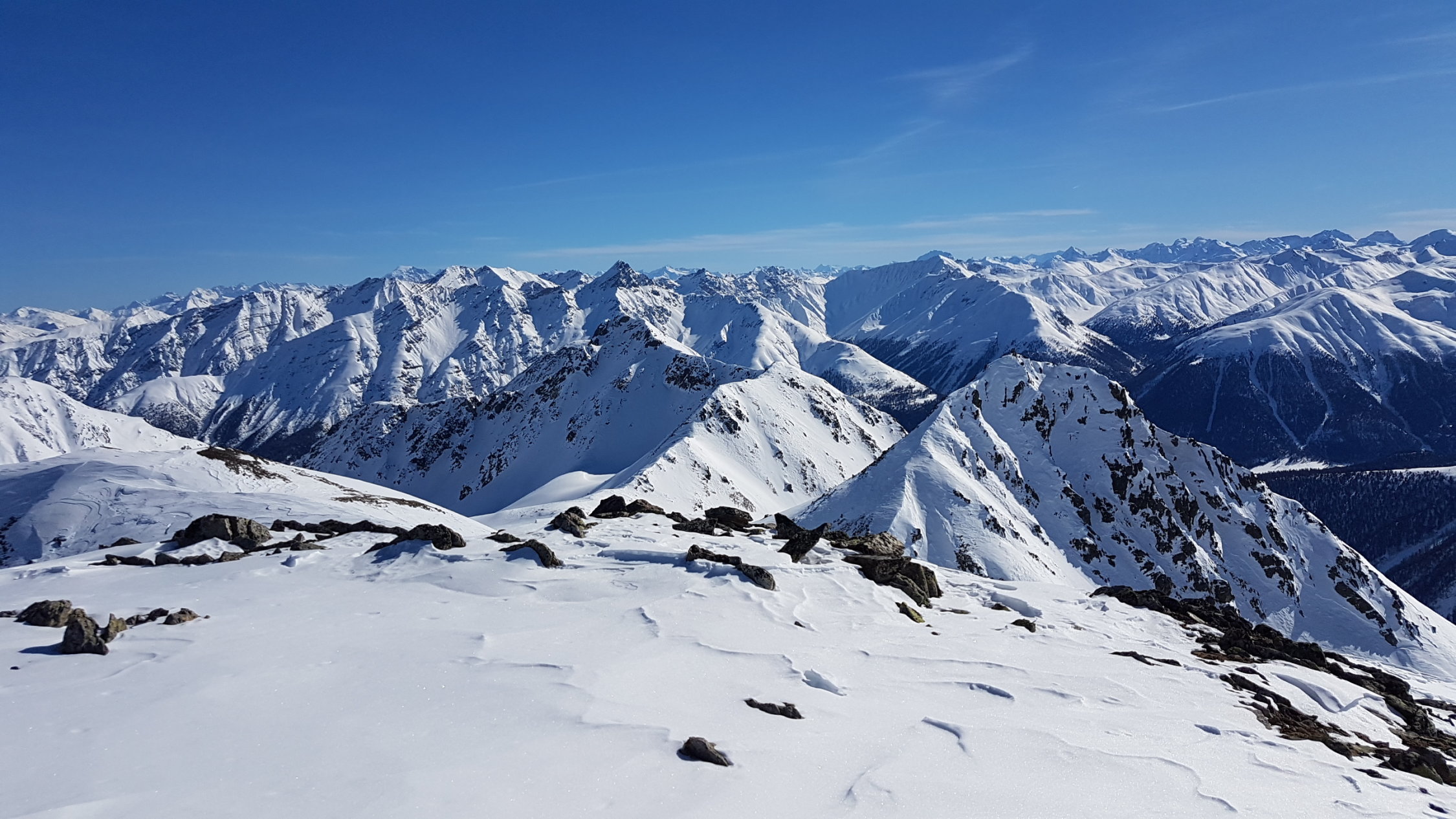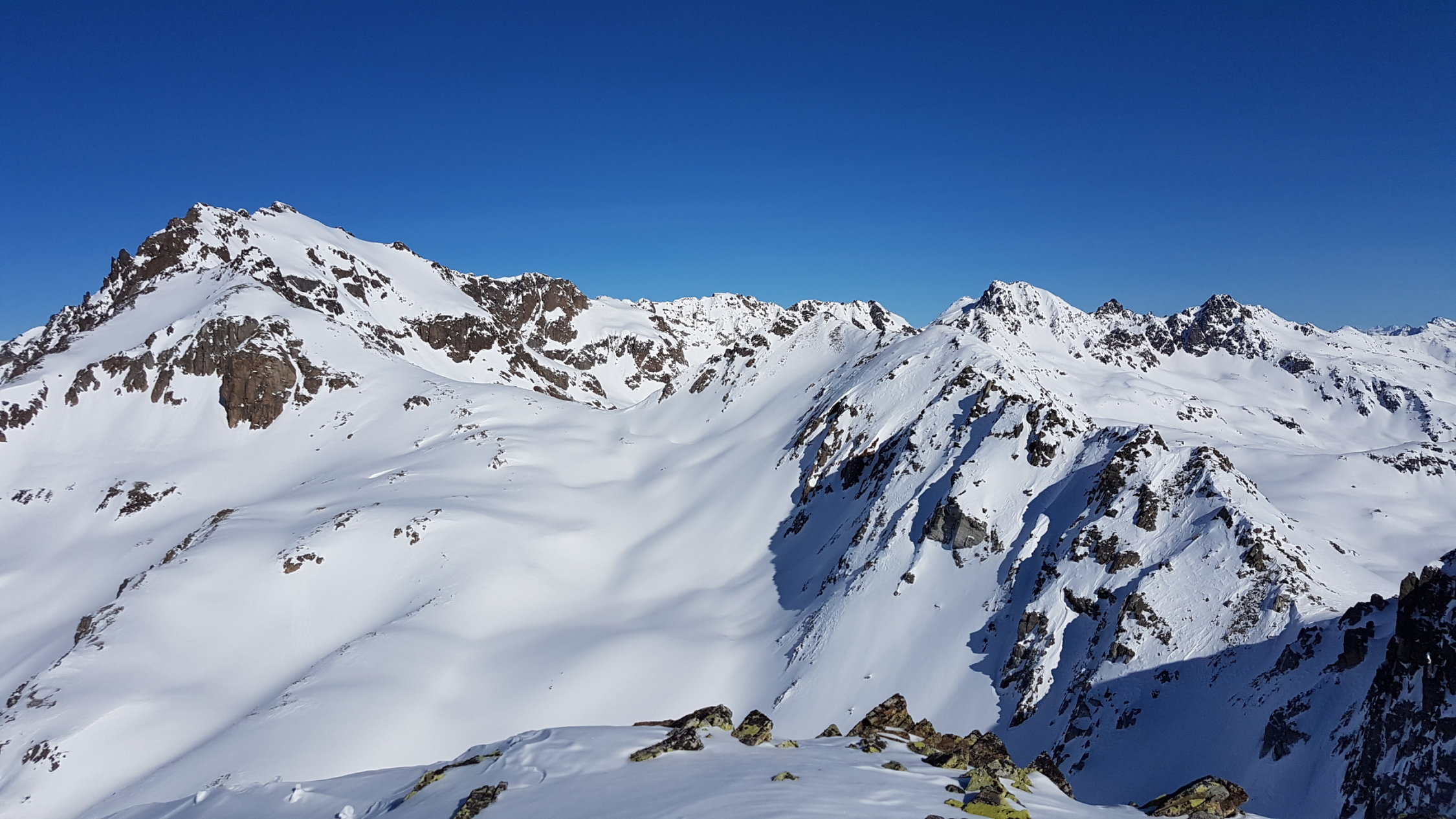 Im Val Punt Ota war bereist gespurt. Ein Stück oben ist eine grössere Lawine runter gegangen, die leicht umgangen werden kann. Wir sind heute hinten im Tal etwas nördlicher als üblich aufgestiegen, ging auch ganz gut.