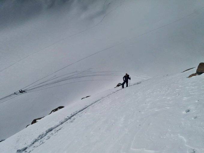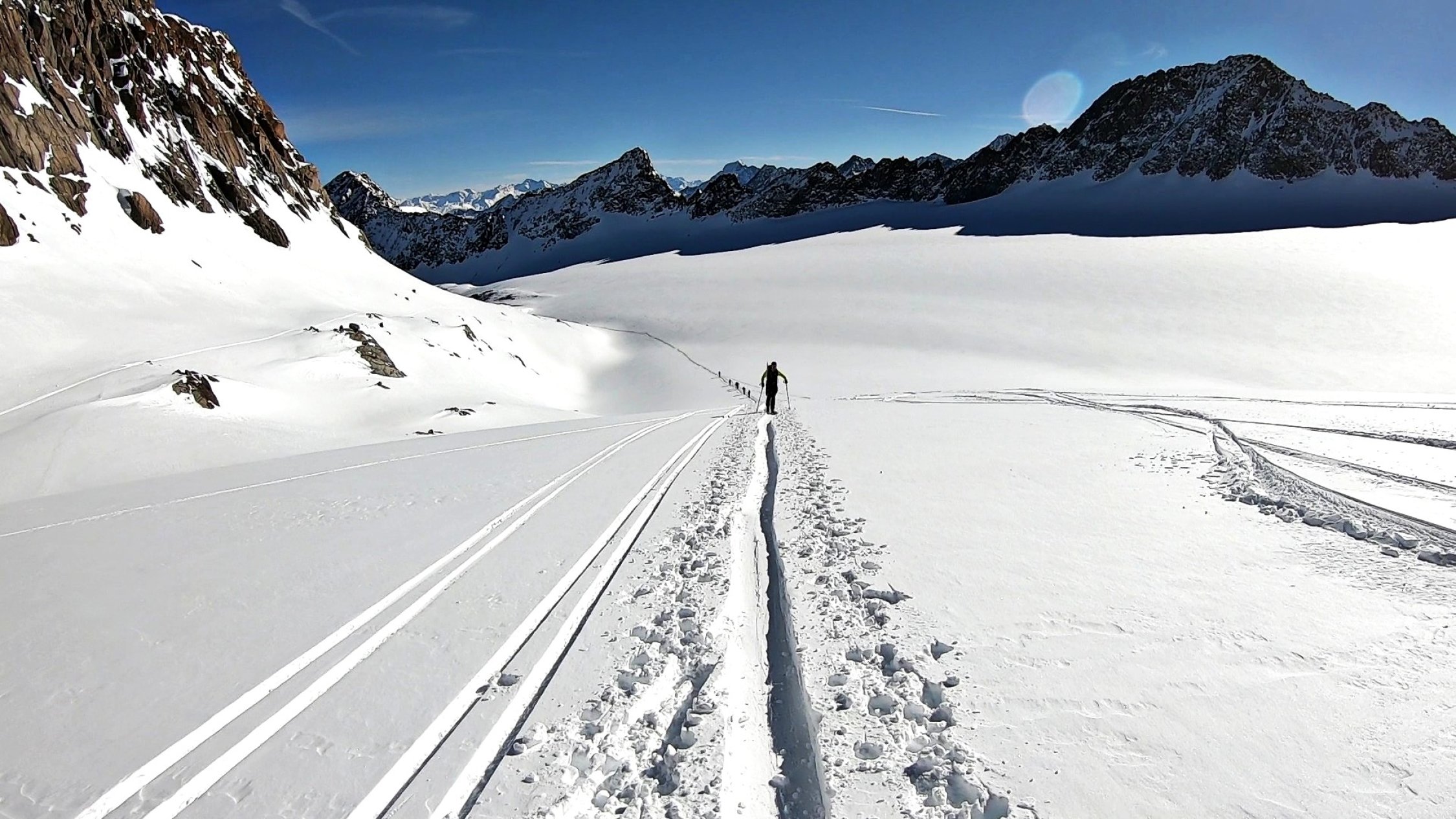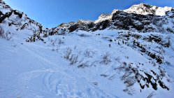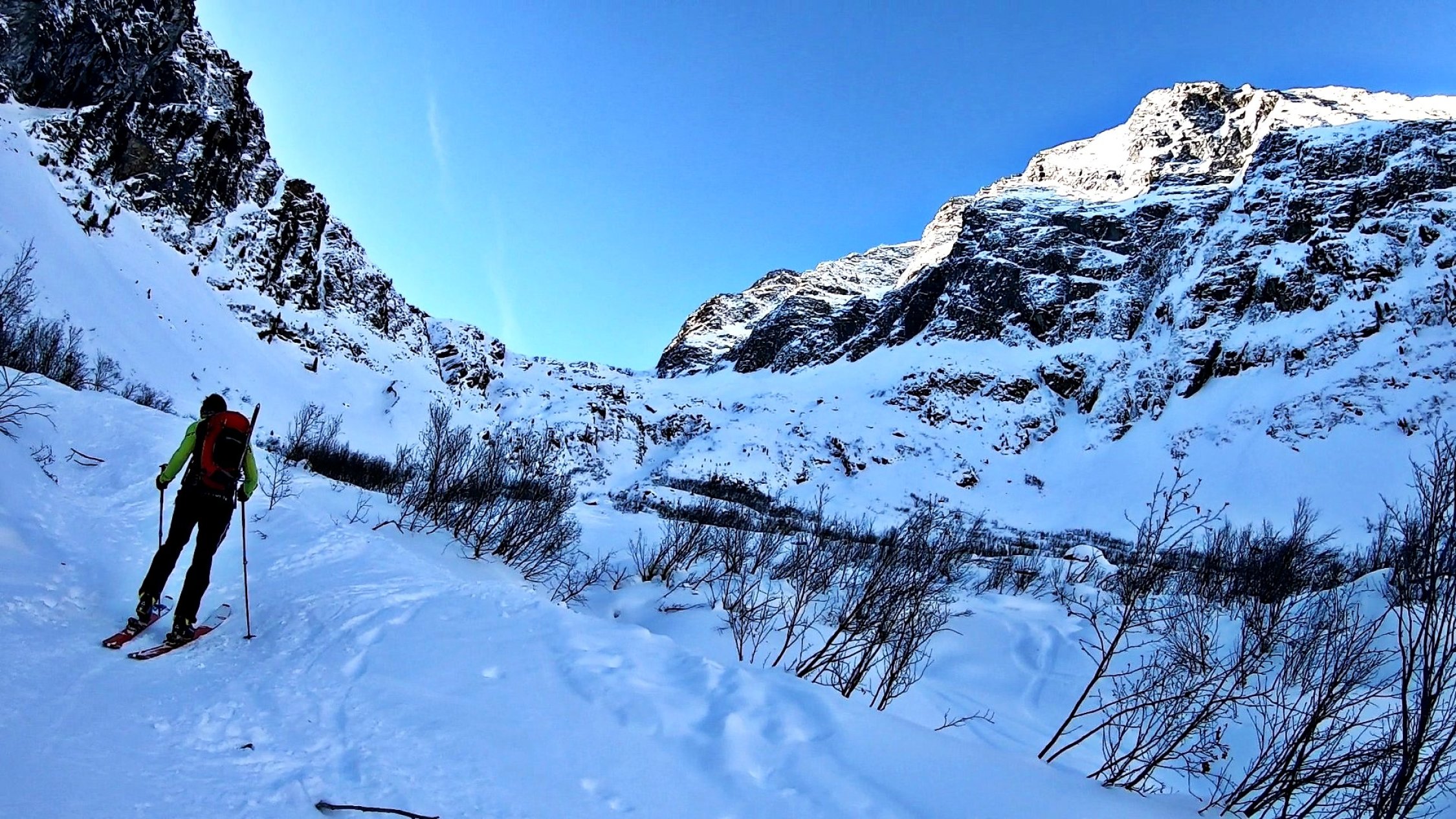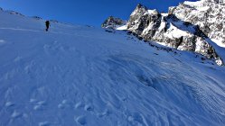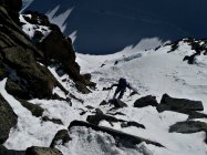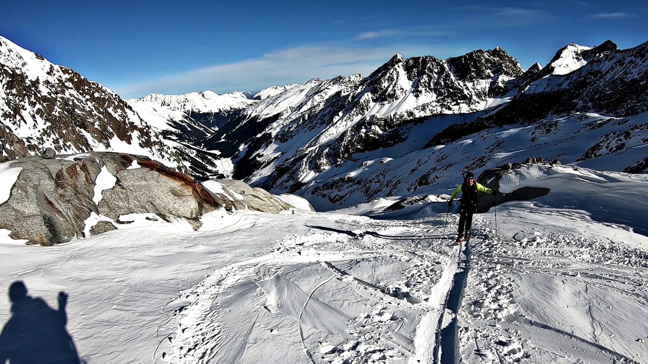 Die Mauer weißt aktuell so ziemlich alle Verhältnisse auf. Von Bock Hart bis zu feinsten Pulverschnee ist alles dabei. Abfahrt über die Rotgratfernerrinne die aktuell noch etwas Pulverschnee aufweist.