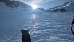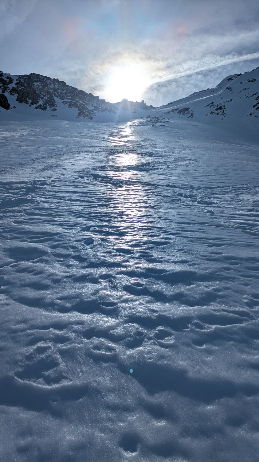 Optimale Abstrahlung, dadurch sehr hart und oben um 11:30.Uhr noch kein Firn
