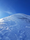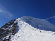 Zu Fuss links haltend weiter bis zur Ostschulter und dem "eigentlichen Skidepot". Auf griffiger Unterlage (blanke Stellen müssen keine betreten werden) über den steilen Rücken des Ostgrates bis zum Ostgipfel. Der Verbindungsgrat zum Hauptgipfel ist teils recht ausgesetzt.
