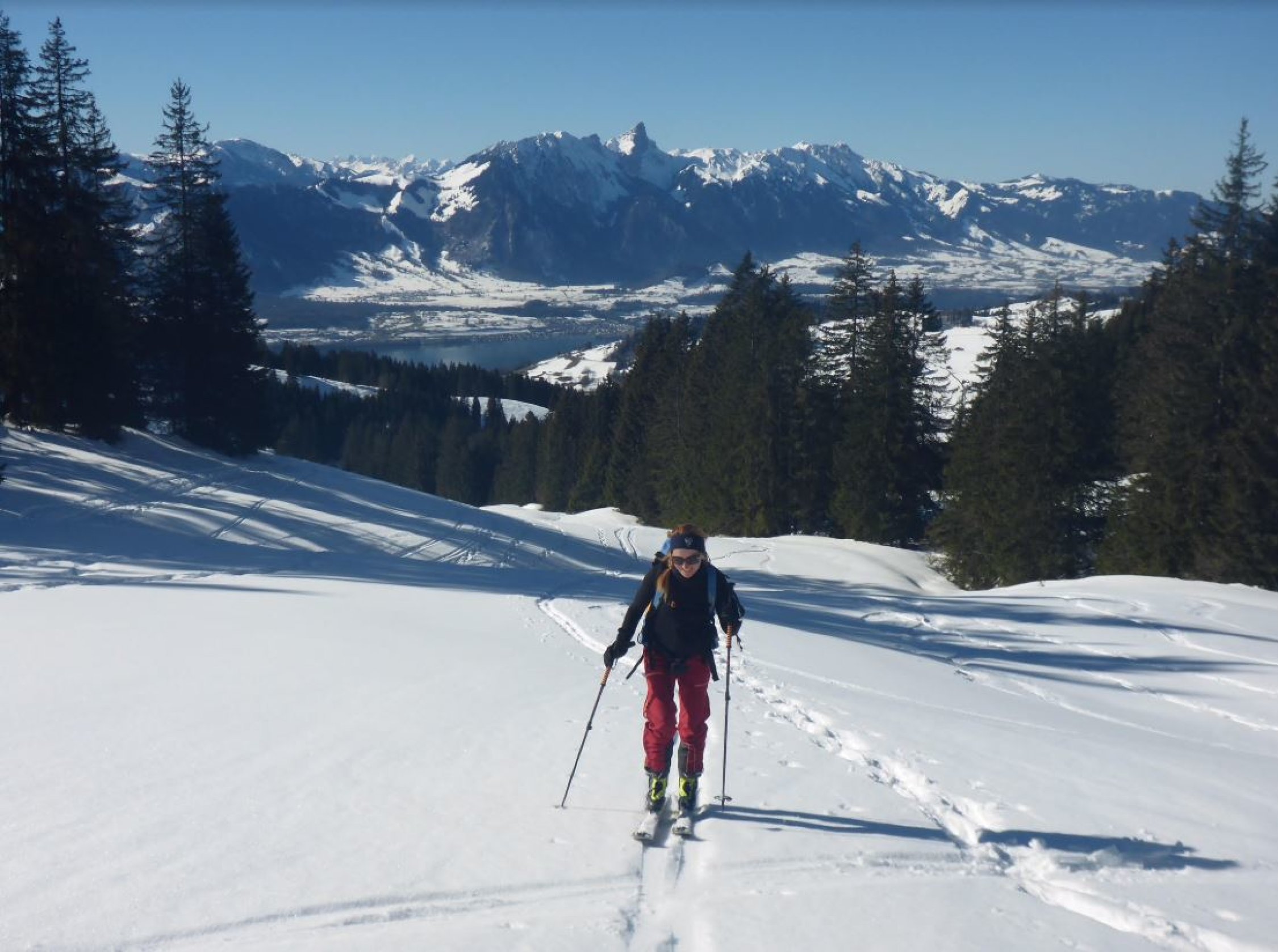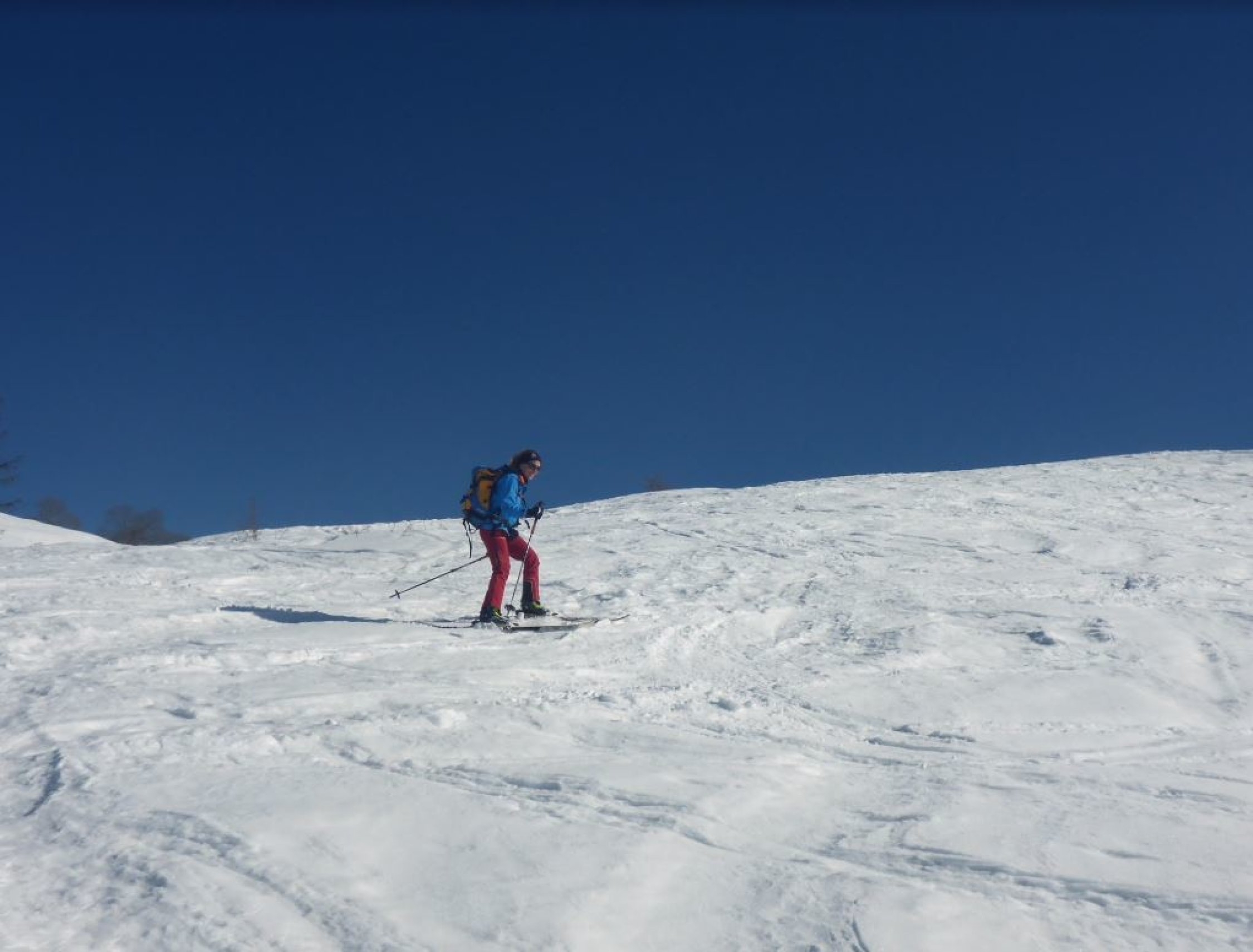 Man findet so ziemlich alles an Schneearten vor. Teils noch Pulver, aufgefirnter Altschnee, Bruchharsch, harte fast pistenähnliche Verhältnisse