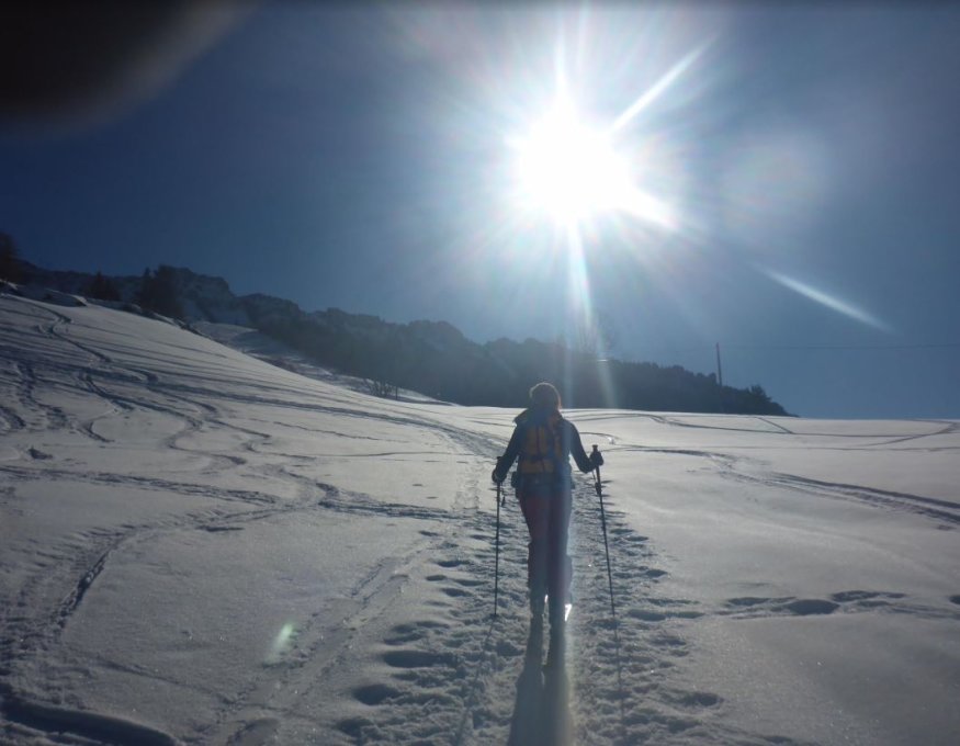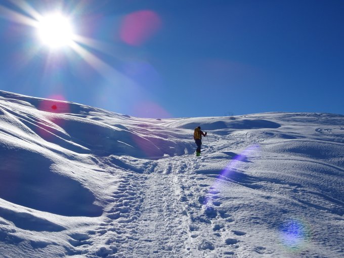 Man findet so ziemlich alles an Schneearten vor. Teils noch Pulver, aufgefirnter Altschnee, Bruchharsch, harte fast pistenähnliche Verhältnisse