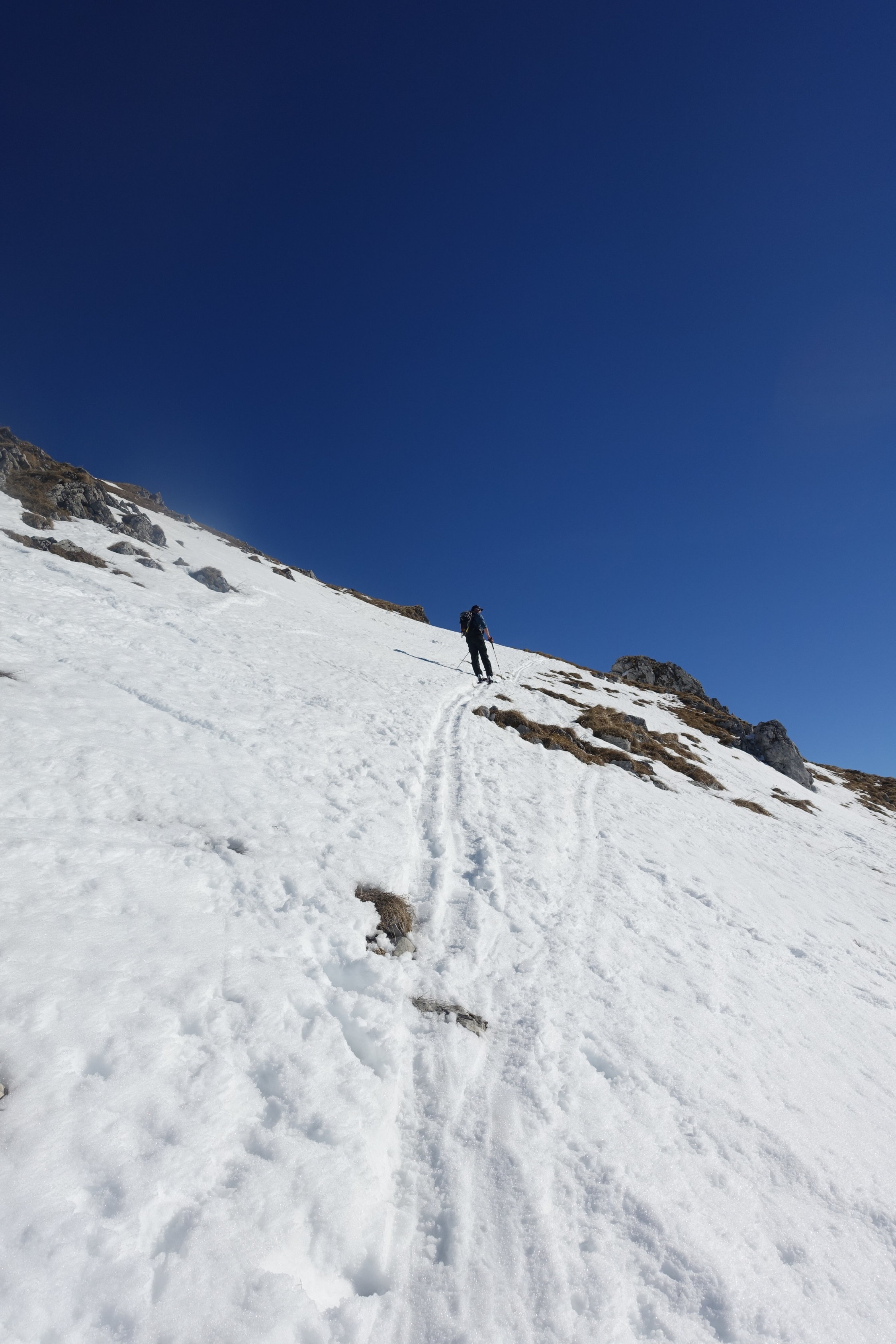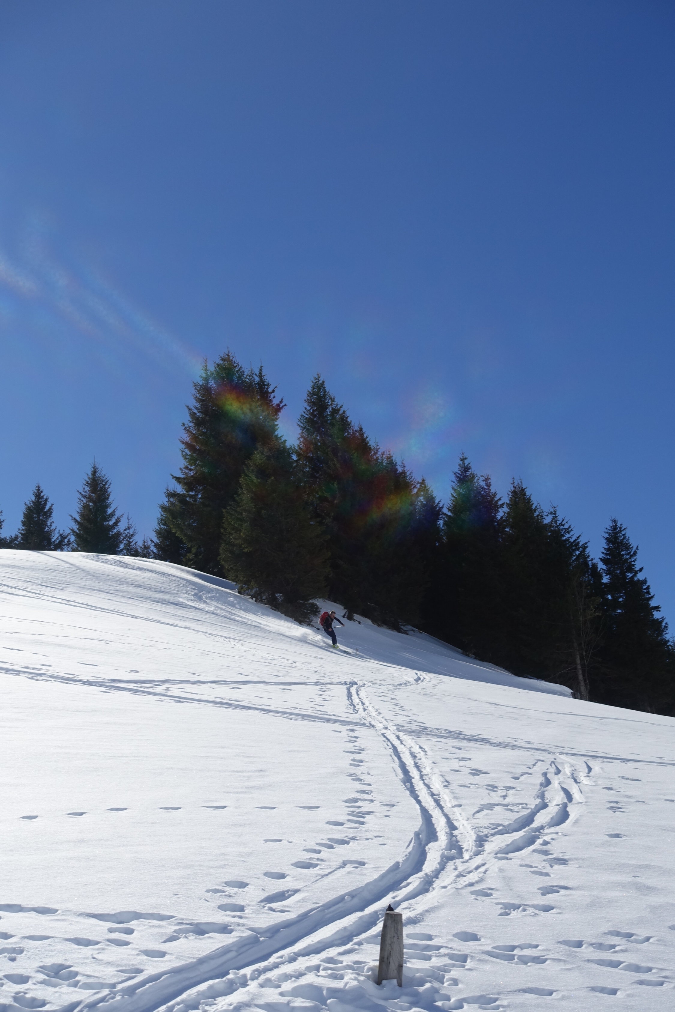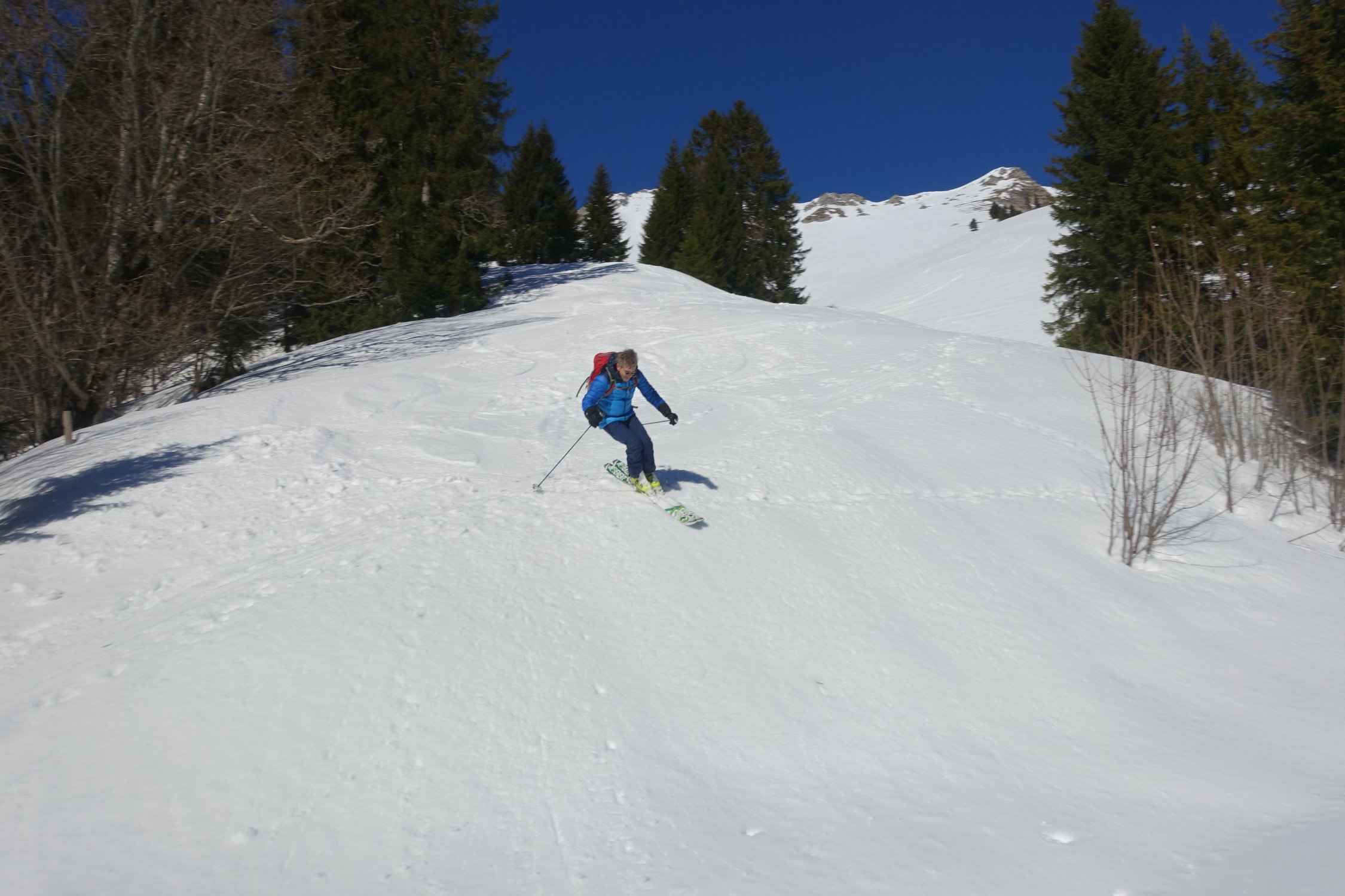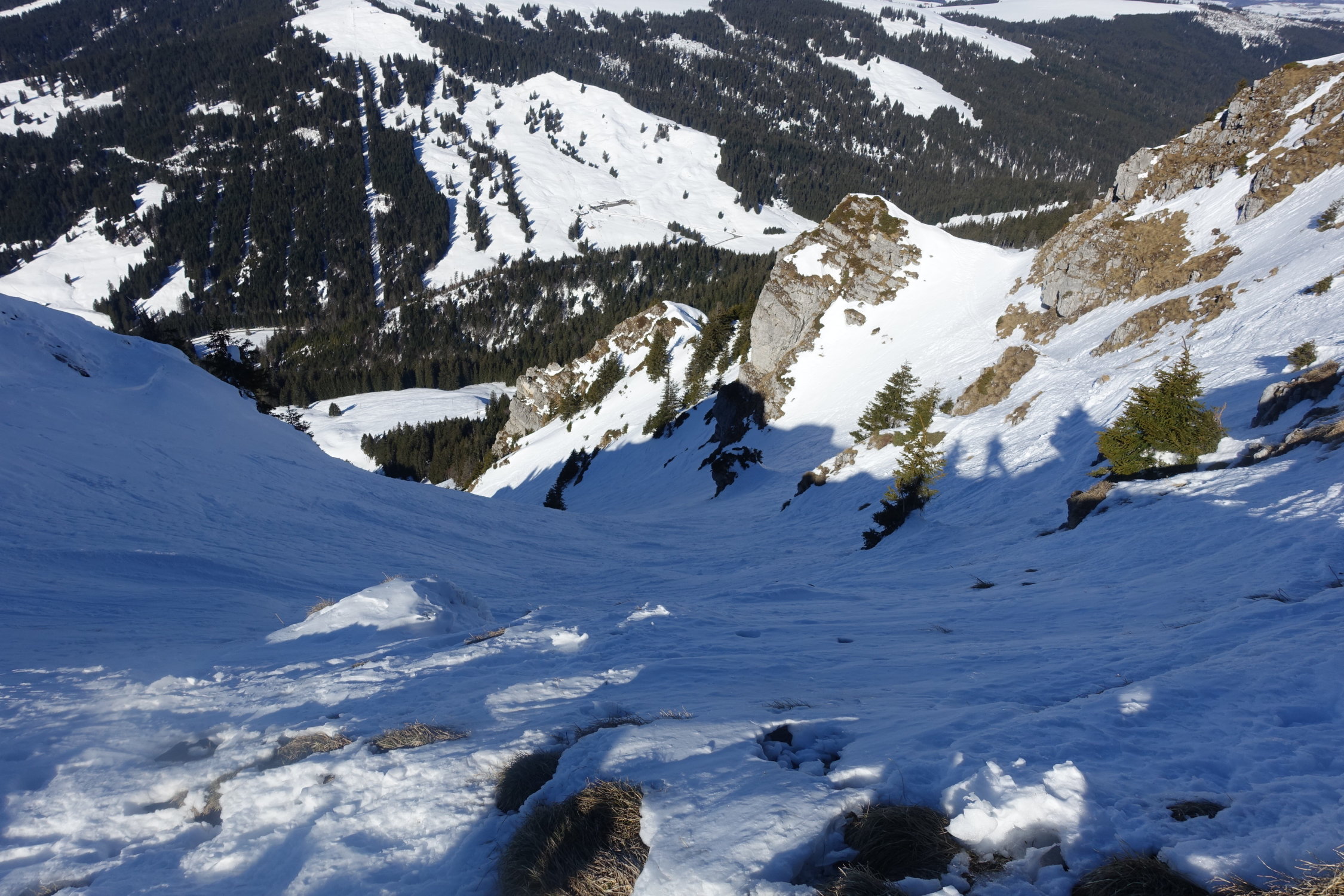 aufstieg nord mit harsteisen auf glasiger spur,gipfelgrat fast aper.sind wegen wärme nicht südcouloir direkt sondernseitenflanke unter gipfel gefahren.super sulz auf tragend(11.30).abfahrt richtung albeuve an wald entlang noch pulver,ebenfals abfahrt von le mologi.nach pause in bergbeiz Nordflanke schön aufgeweicht und gut zu fahrendenr sulz(13.30),