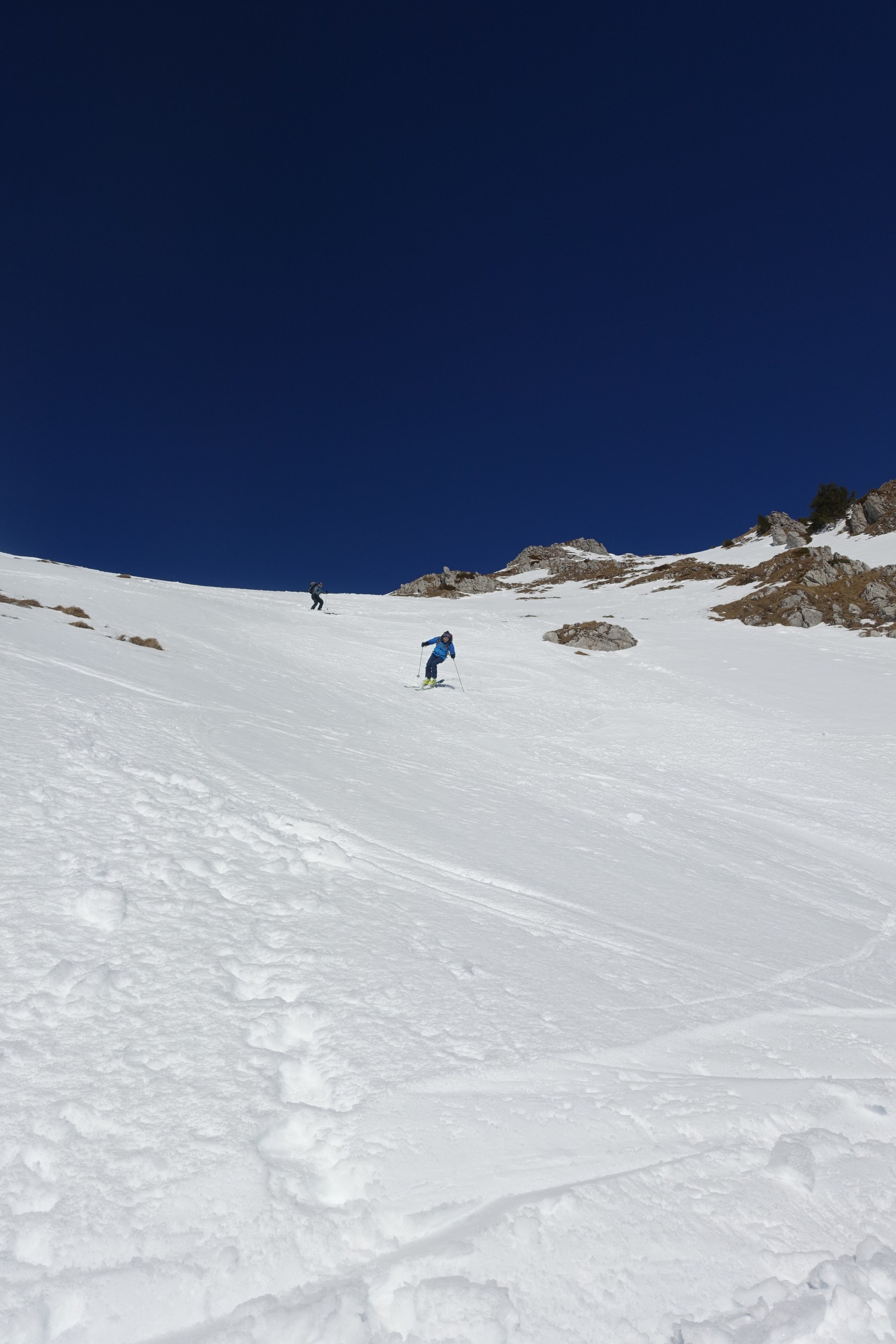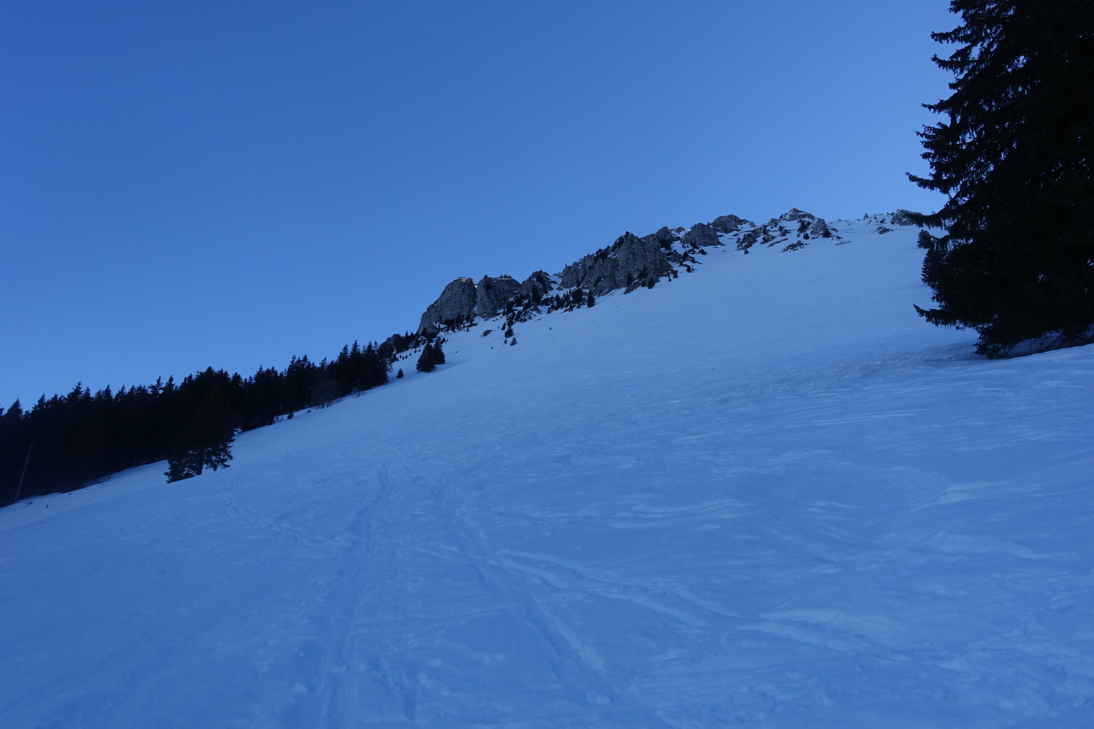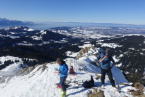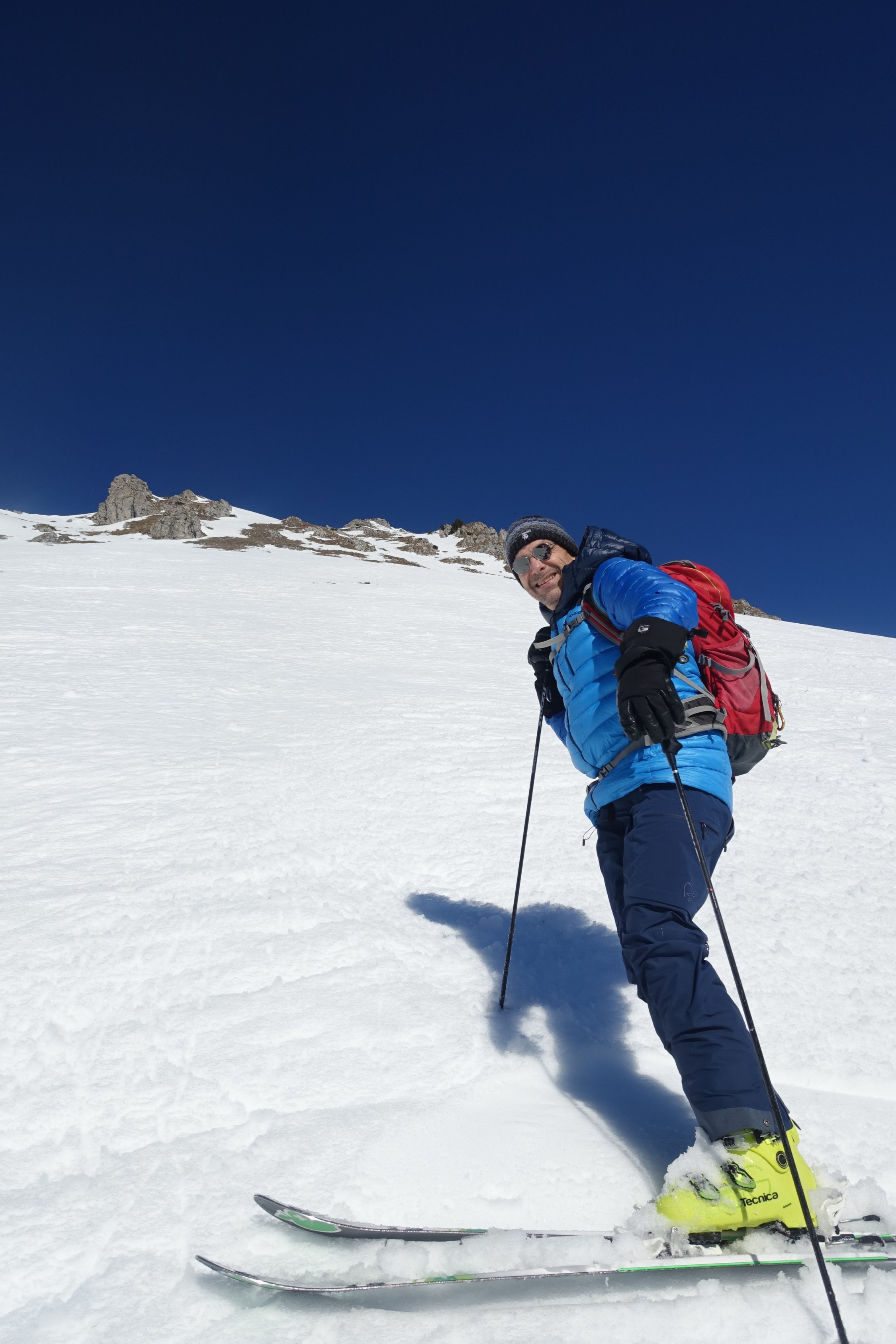 aufstieg nord mit harsteisen auf glasiger spur,gipfelgrat fast aper.sind wegen wärme nicht südcouloir direkt sondernseitenflanke unter gipfel gefahren.super sulz auf tragend(11.30).abfahrt richtung albeuve an wald entlang noch pulver,ebenfals abfahrt von le mologi.nach pause in bergbeiz Nordflanke schön aufgeweicht und gut zu fahrendenr sulz(13.30),