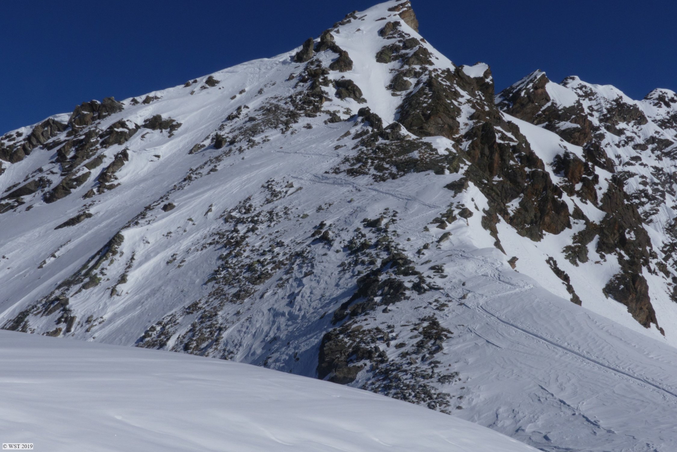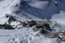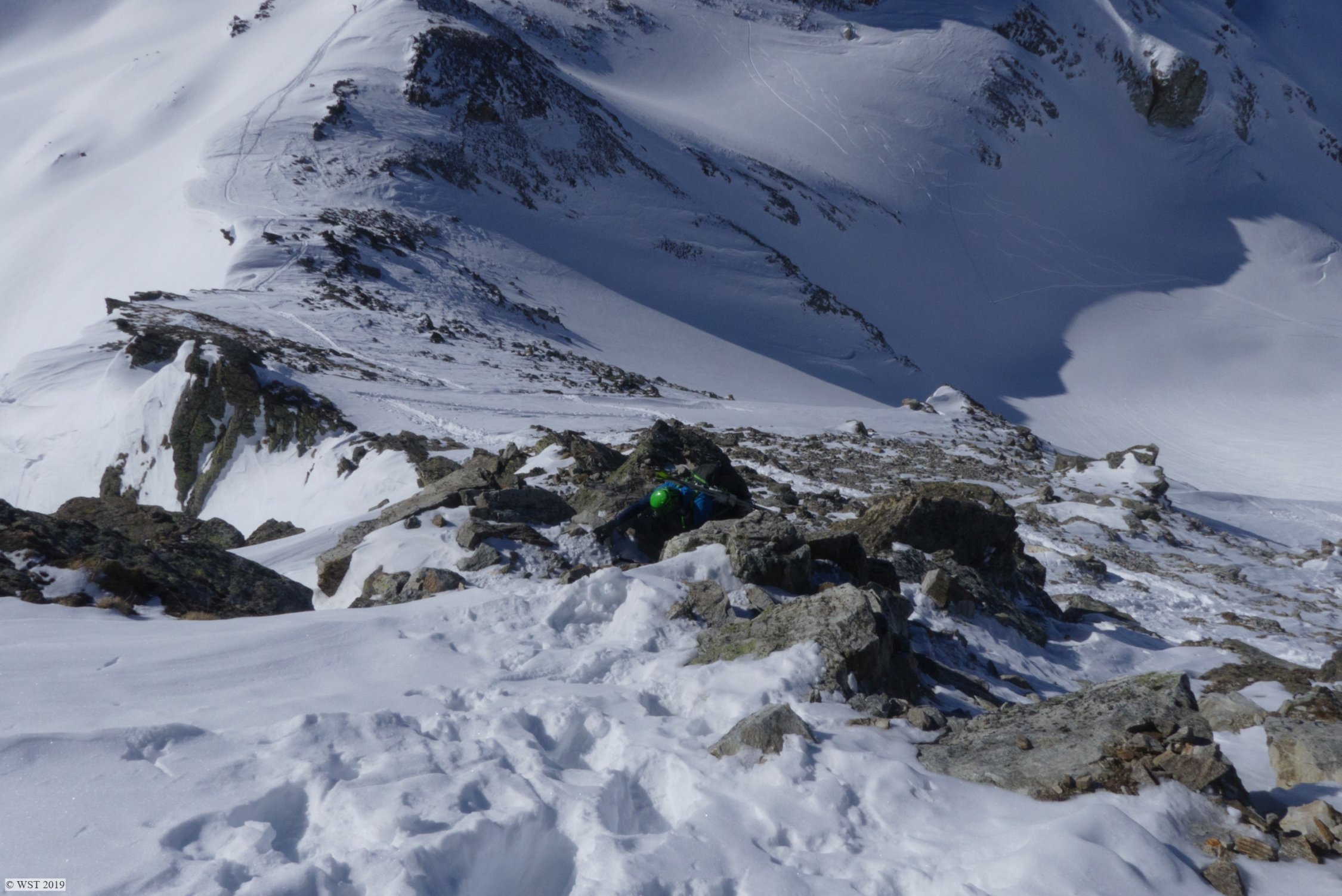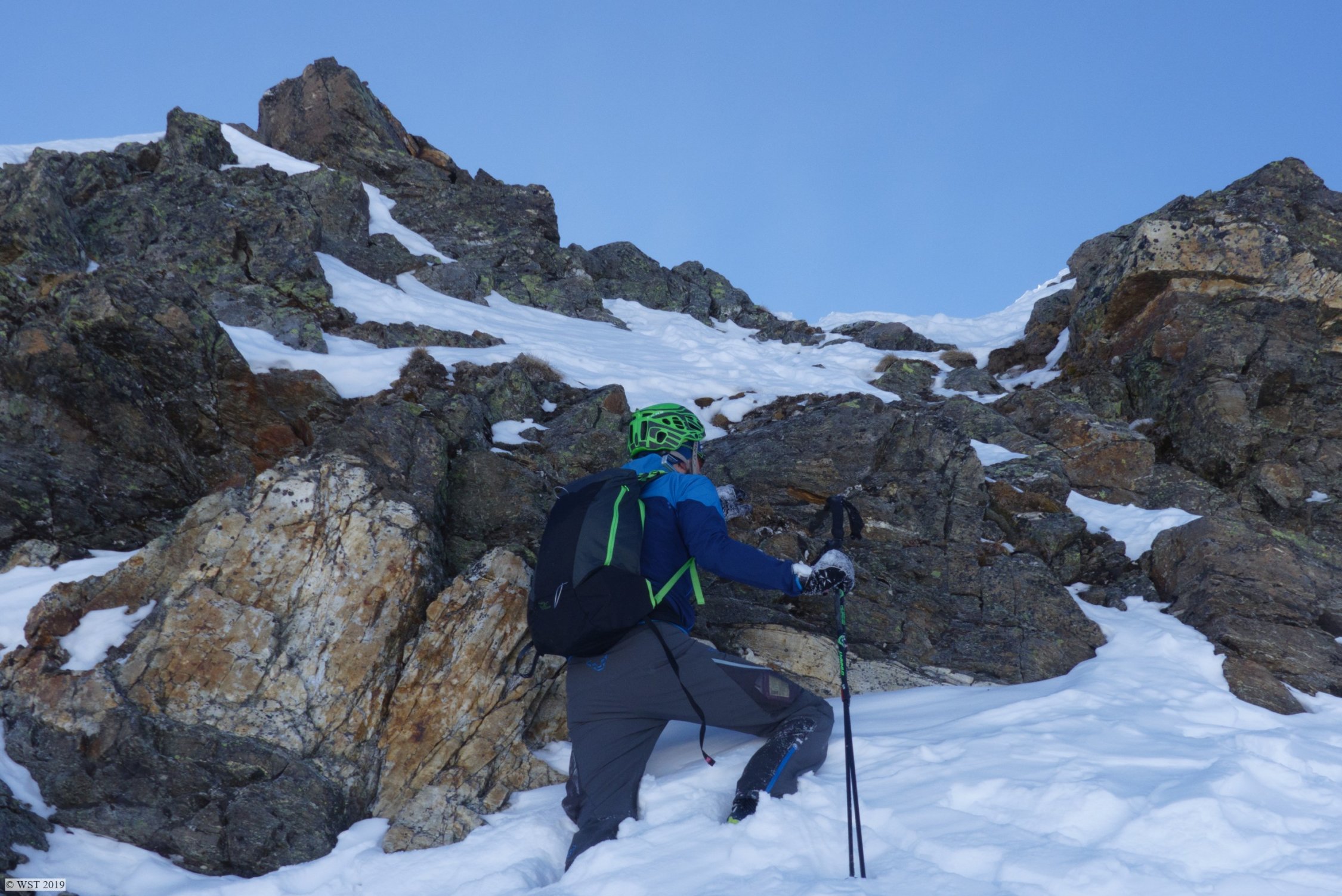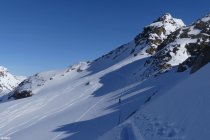 Wir waren die ersten, wohl seit längerem, die bis aufn Gipfel gingen. Nun ist Spur drin. Aber Achtung: im oberen Teil der Rinne etwas eisig, tw. Blackeis drunter. Steigeisen im Gepäck könnten hilfreich werden.