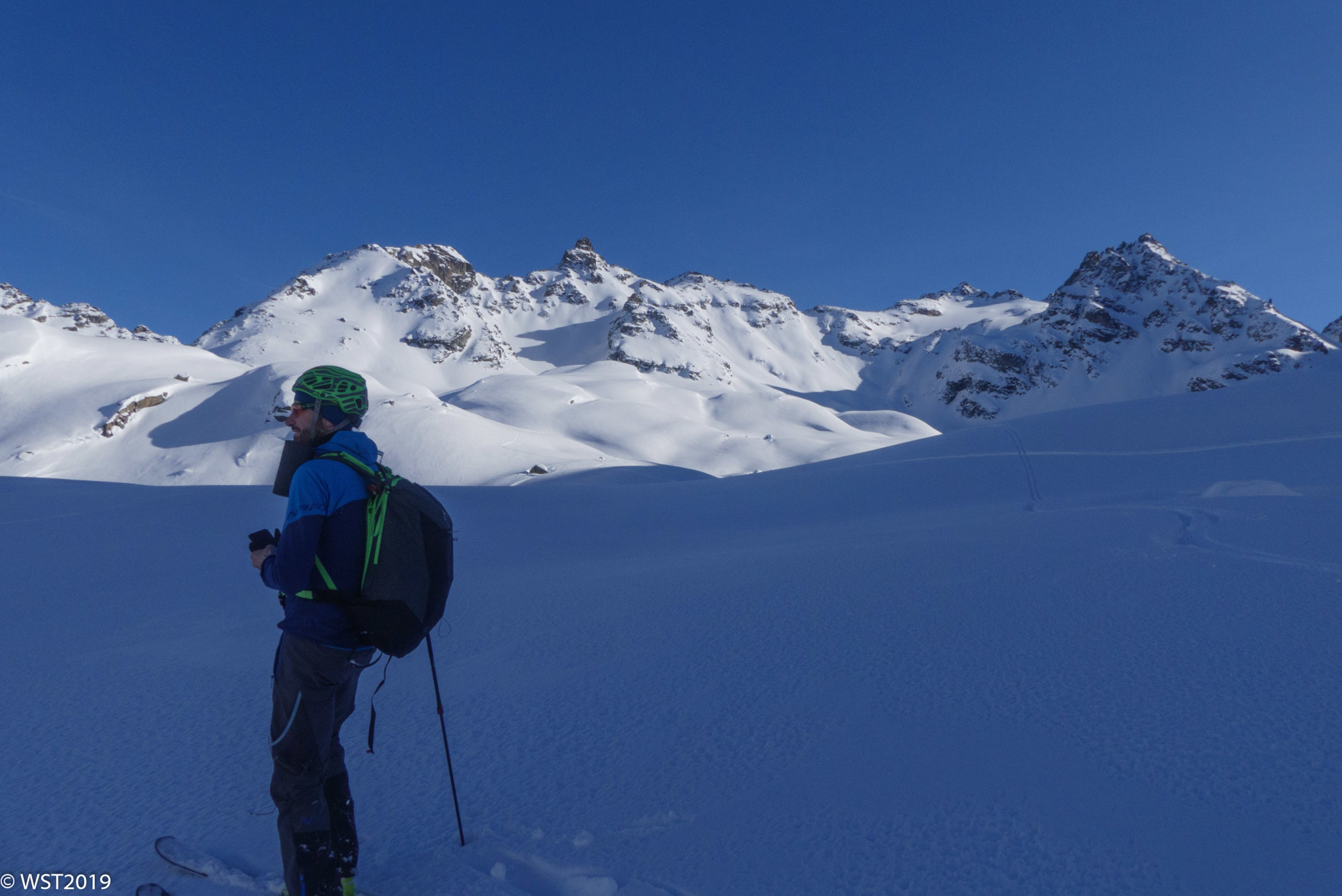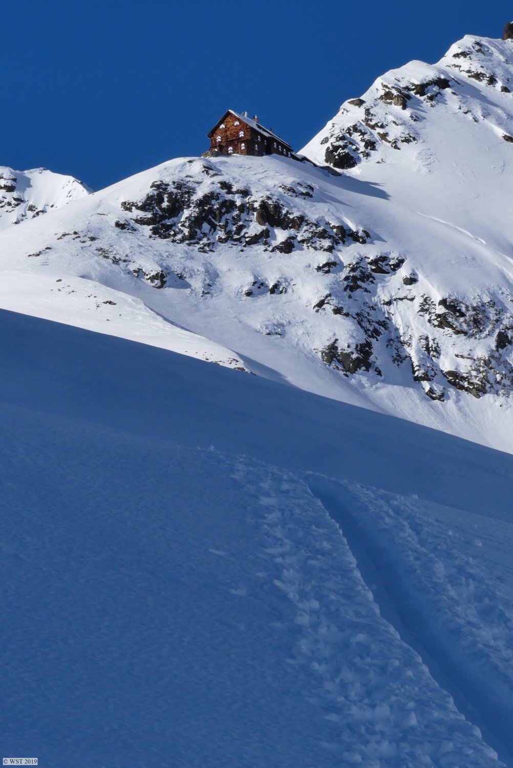 Einfach nur Pulver und stahlblauer Himmel.