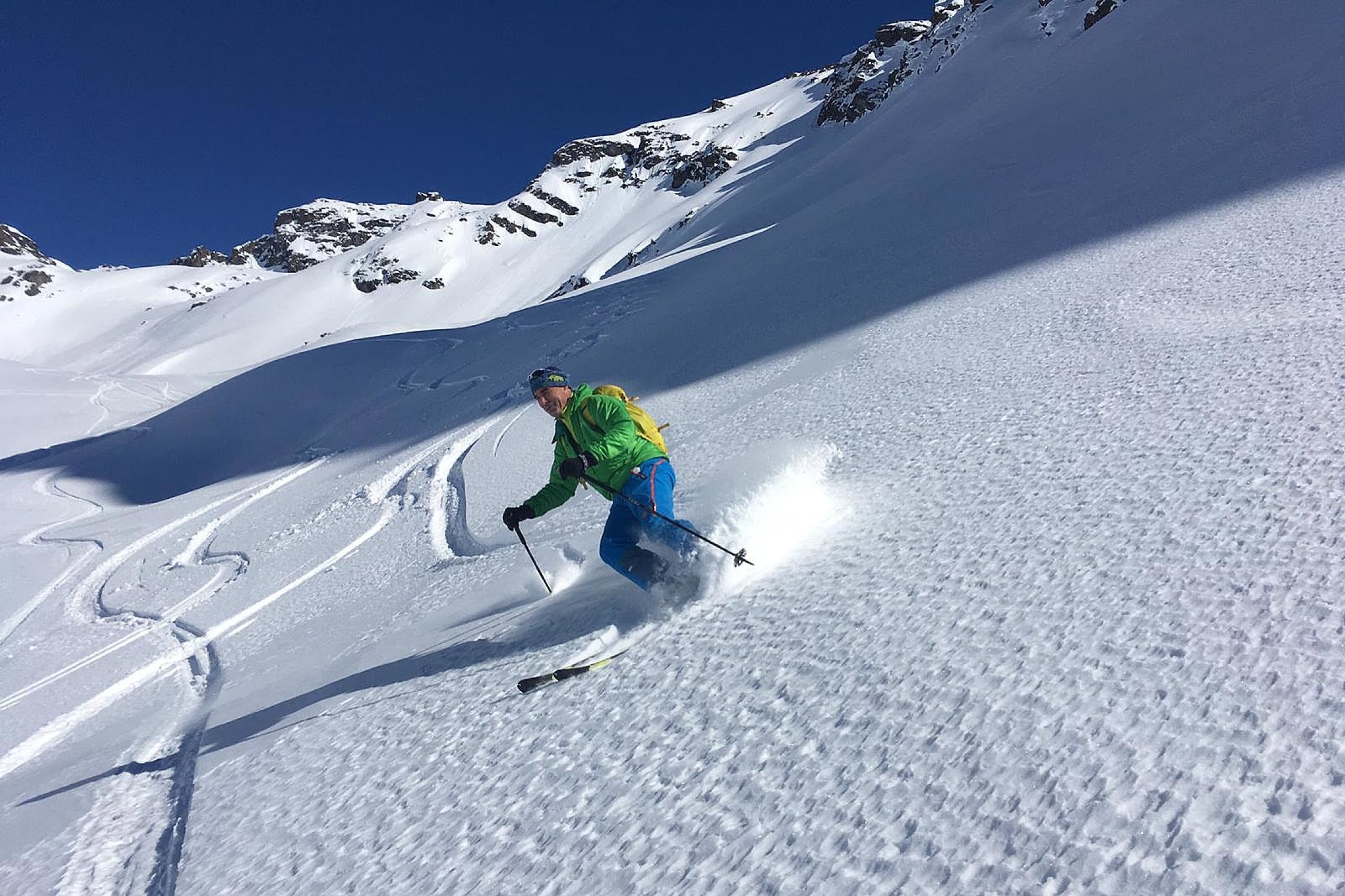 Abmarsch ab Tschuggen um 10.00. Insgesamt viel besser als erwartet. In der Abfahrt immer noch sehr schöner Pulver (in den Hängen, wo die Sonne noch nicht reinscheint). Die Sonnehänge sind ca. um 12.00 mit griffigem Sulz auch gut zu fahren. Aussicht herrlich! Isentällispitz ist auch gut mach bar (Schnee bis ganz oben).