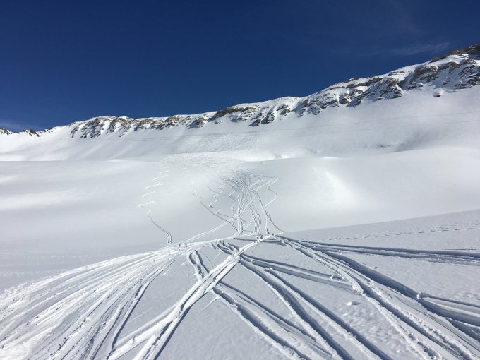 Abfahrten nordseitig alle noch pulvrig. Wer ein anderes Ziel als Wiss-/ oder Spitzmeilen wählt, wird noch viel Raum finden.