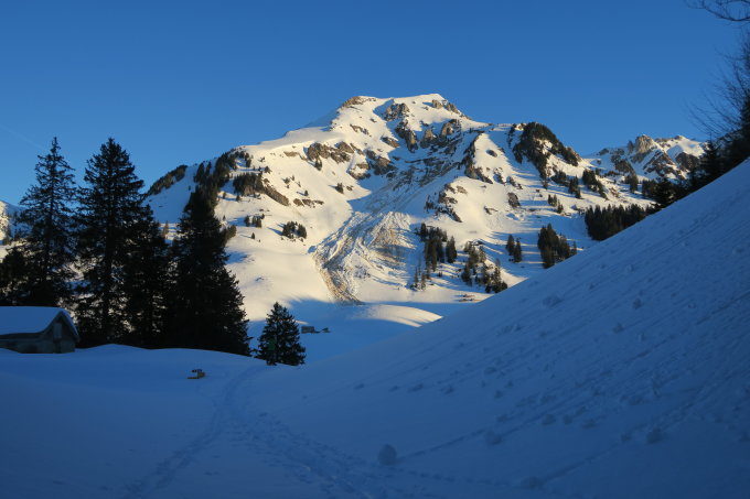 Sehr gute Verhältnisse, für den ganzen Aufstieg hart. Herrliche Abfahrt auf Sulzschnee.