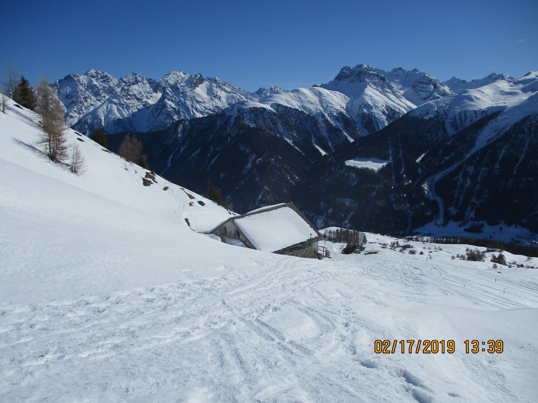 Zwei Tage mit Bombenwetter im schönen Unterengadin machten den Verdruss der Warterei auf der Hinfahrt am Vereina vergessen und bügelten auch die zähflüssige Rückfahrt wieder aus. Wir gingen den Berg sozusagen homöopathisch dosiert an, mit Zwischenübernachtung auf der idyllischen Selbstversorgerhütte Chamanna Cler, welche wir uns mit zwei netten jungen Damen aus SH teilten.
