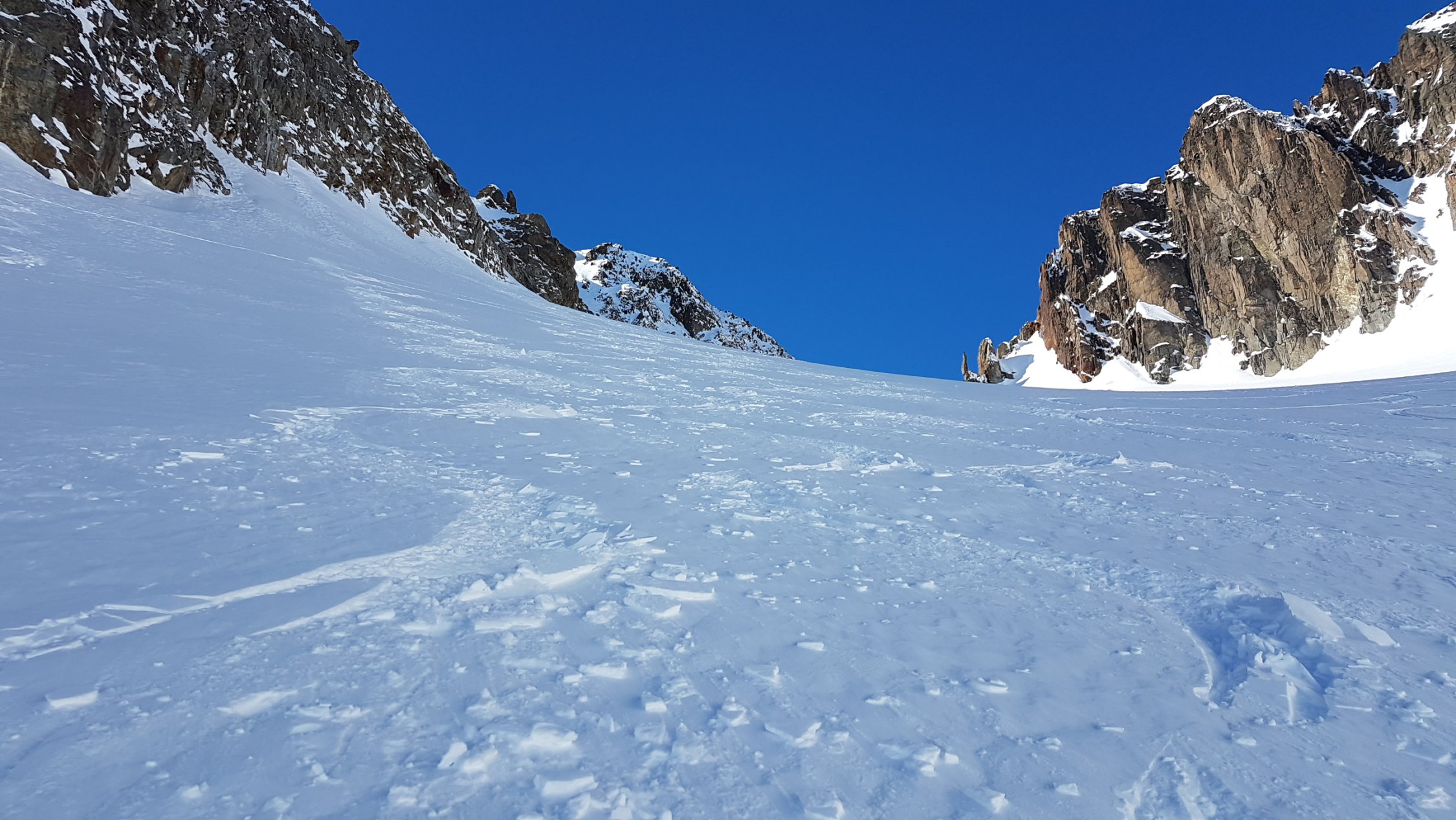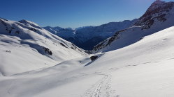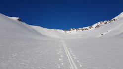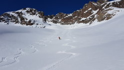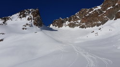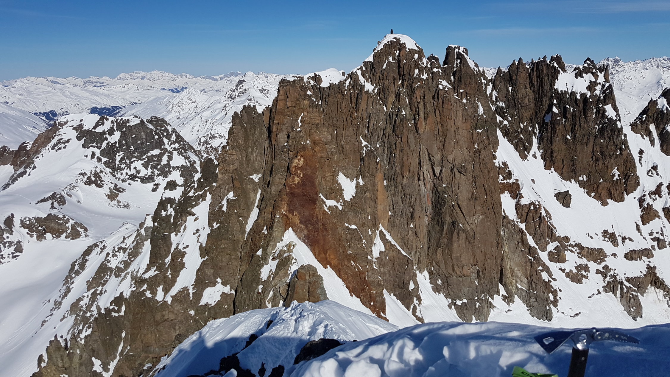 Der Aufstieg war gespurt. Bei den Südhängen sind schon einige grössere Lawinen runter gegangen, die kann man leicht umgehen. Wir sind mit Pickel, aber ohne Steigeisen auf den Gipfel. Einige etwas heikle Passagen.