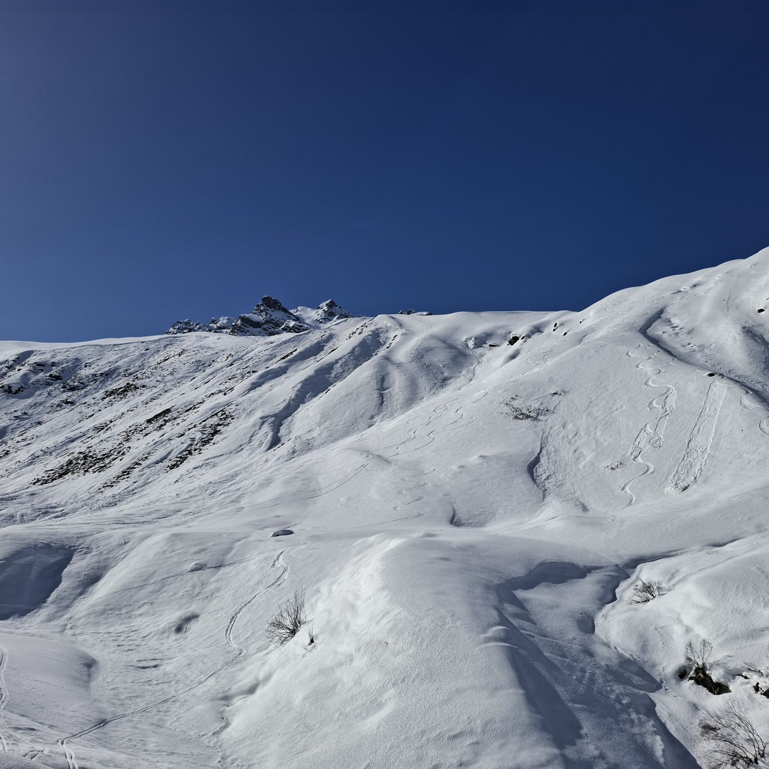 Ab ca. 2250m Meter immer noch Pulver, heute auch nicht so warm.