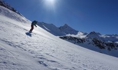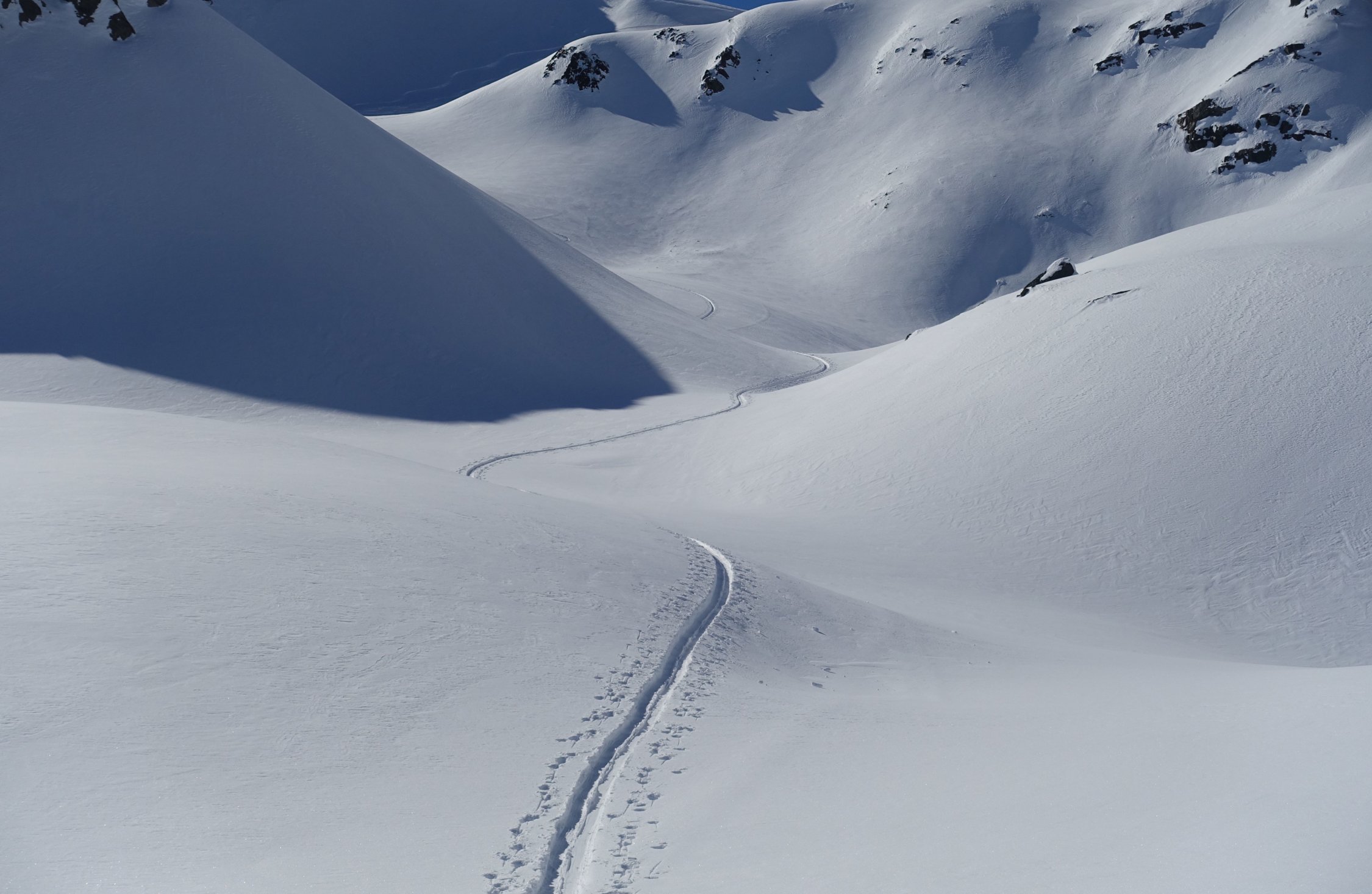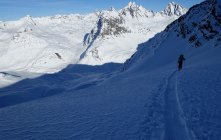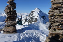 Nach der frühen Anfahrt am Samstagmorgen aus dem Schwarzwald starteten wir die Tour um 09:30 Uhr in Tschuggen. Hier waren sehr viele Autos von Tourengänger und wir dachten, dass wir heute wohl nicht alleine unterwegs sein werden. Aber irgendwie bogen alle links und rechts ab und nach dem letzten Abzweig in Richtung Flüela Wisshorn waren wir komplett alleine unterwegs. ...mal abgesehen von den Auto's welche auf de Flüela-Paßstraße mit ihrem "Fahrtechniktraining" beschäftigt waren. Ab der Schwarzhornfurgga konnten wir den Gipfelhang zum Schwarzhorn frisch einspuren. Vor uns war hier wohl schon länger niemand mehr oben. Auch der Anstieg zum Radüner Rothorn war noch jungfräulich, genauso wie die Abfahrt zur Rothornfurgga. Heute herschte schneetechnisch ein totales Kontrastsprogramm. Die nordseitigen Hänge waren noch vollkommen pulvrig, südseitig war der Schnee vollkommen durchfeuchtet. Selbst in der Steilstufe in Richtung Schwarzhorn mussten wir uns, trotz der großen Höhe, mit nassen Rutschen herumschlagen.