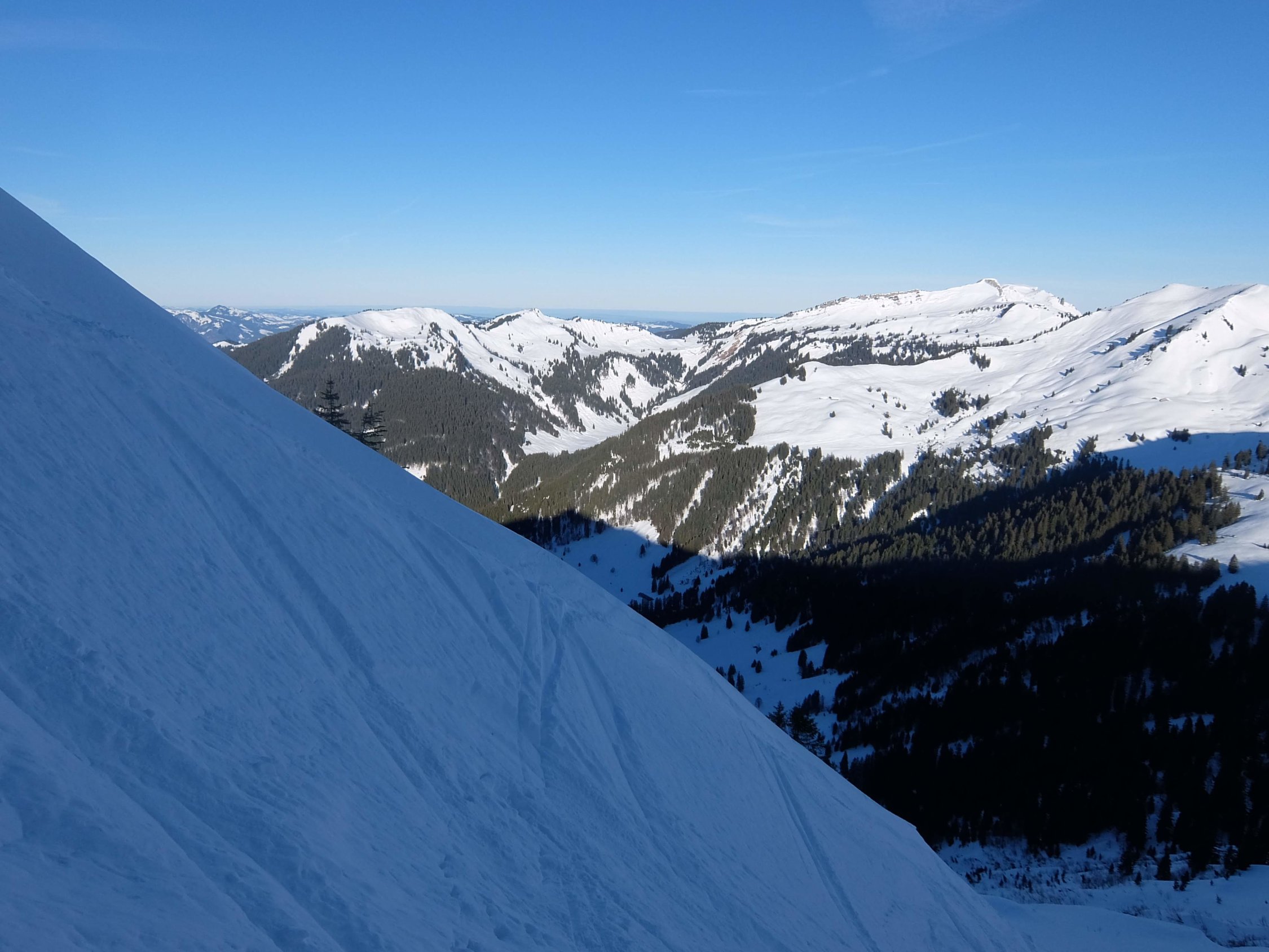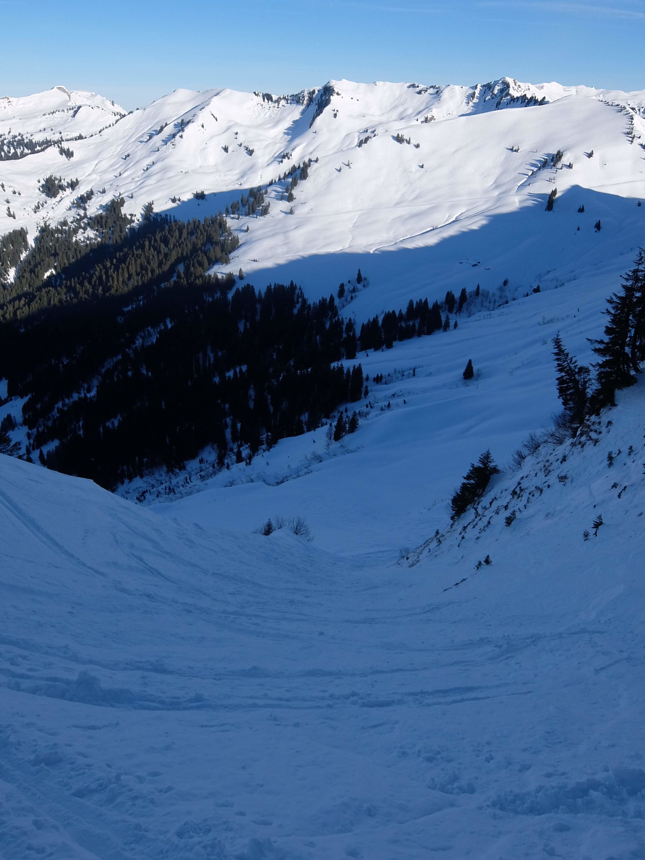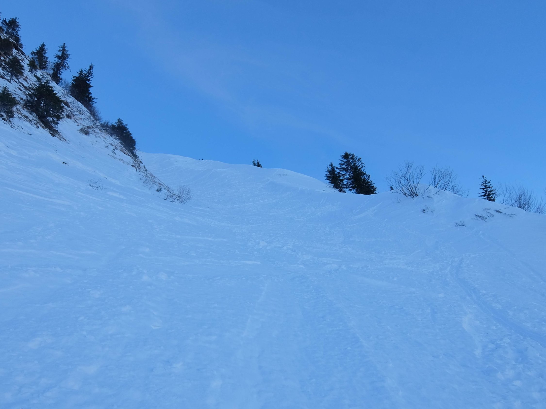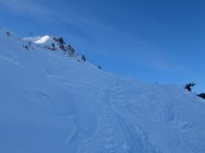 Der gesamte Hang der Löffelspitze (ab Talschluss) hat (windgepressten) Pulver. Der Bach ist komplett zu, er kann überall gequert werden. Aufstiegsspur im mittleren Teil etwas rutschig (Harscheisen), in der oberen Rinne gute Spur, am Schlusshang wieder etwas schwierig (Spur von Abfahrenden wieder etwas zerstört). Gipfelaufbau komplett gefroren aber durchgehend fahrbar bzw. abrutschbar. Das steilste Stück neben der Gipfelrinne geht in der Abfahrt sehr gut, es hat(te) noch Platz für eigene Spuren. Weiter unten die Rinne Richtung Gehrenspitze abgefahren, auch sehr gut. Überraschend wenig Leute waren bisher oben (es war aber erst Sonntagsmorgen...).