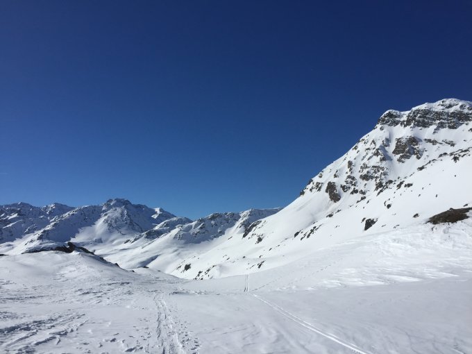 Stark wechselnde Schneeverhältnisse. Im Gipfelbereich stark windbearbeitet und hart. Auf dem Gipfel sehr windig und kalt. Wegen dem Tagesgang bei den Lawinen früh abgefahren. Bei der Abfahrt um 1200 war der Schnee oben noch hart gefroren, mit wenigen pulvrigen Einsprengseln. Unter 2200MüM dann plötzlich zum Teil "pflotschig".