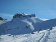 Noch lange gut machbar, es hat meterhoch Schnee, der Pulverschnee wird aber langsam zerfahren.
