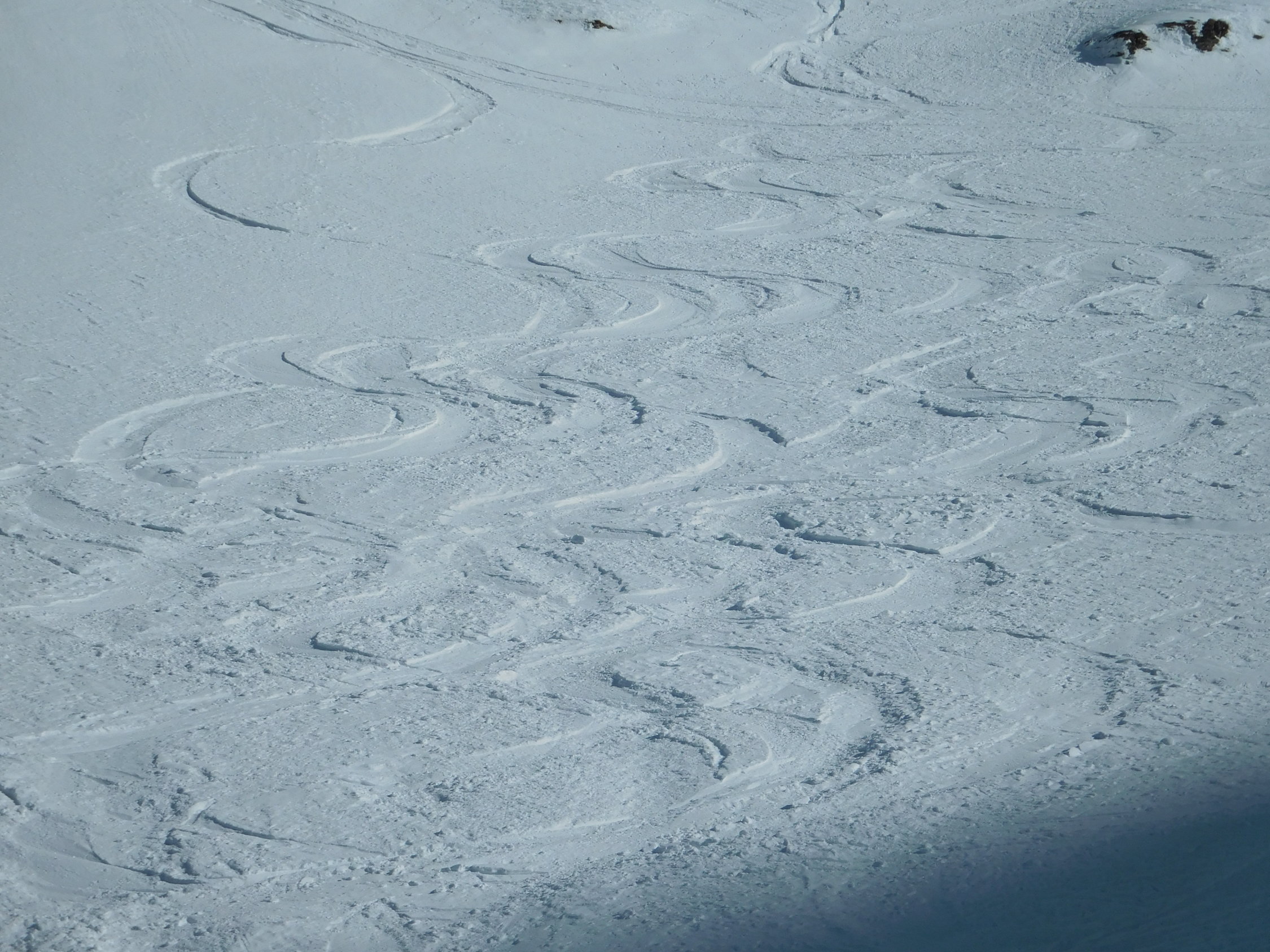 Bei der Abfahrt fanden wir traumhafte Pulverschneehänge an, in denen es erst wenige Spuren gab. Herrlich!!!