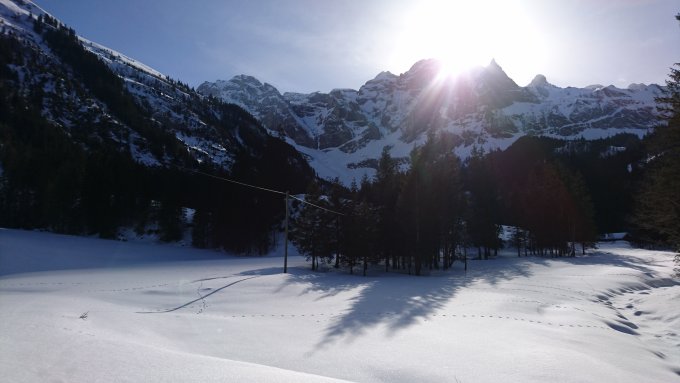 Oft windgepresster Pulver. Aber ohne Deckel, also gut zu fahren. Danach noch auf den Urirotstock. Südhänge dort rauf Nassschnee - Firn. Beiden Bergen fehlt oben Schnee.