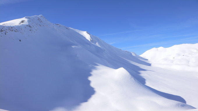 Mit der angekündigten Erwärmung dürfte der steile Südwestgipfelhang der Amselflue mit Vorsicht zu genießen sein.