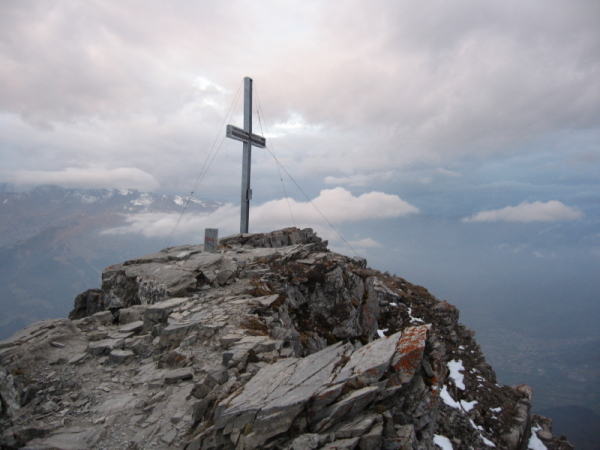 Trotz erneutem Föhneinbruch auf der ganzen Tour windstil und sehr warm. Fast zu warm. Eine halbe Stunde vor Sonnenaufgang auf dem Gipfel ein getroffen und immer noch Sterne am Himmel aber für einen Sonnenaufgang langte es nicht mehr. Schade.