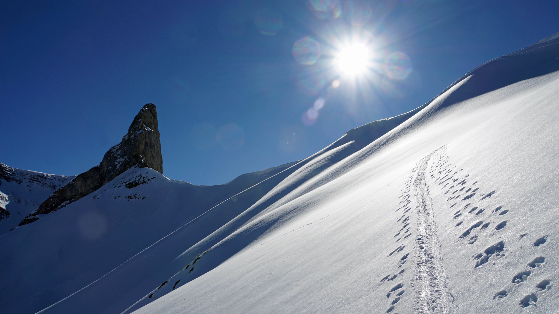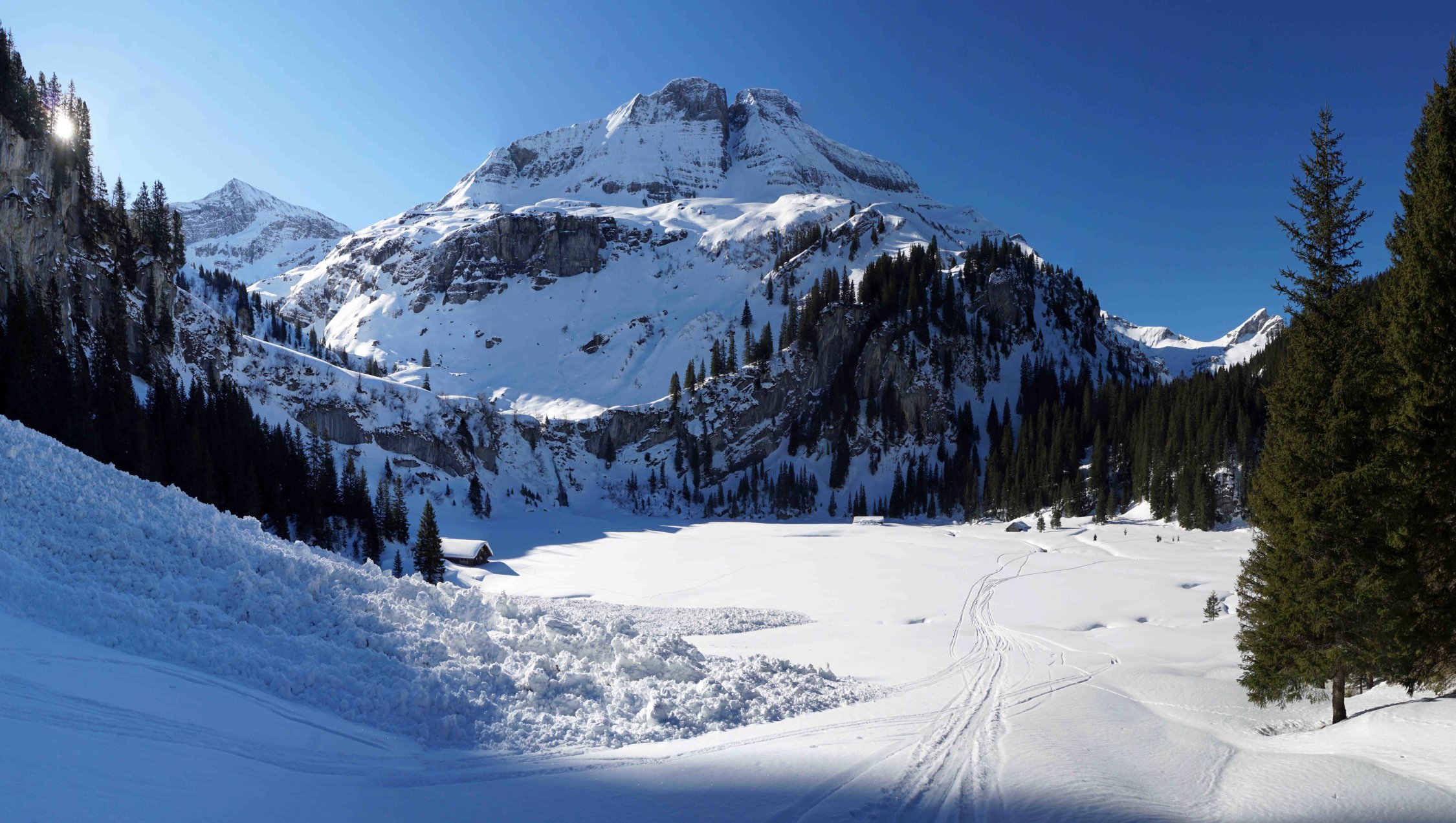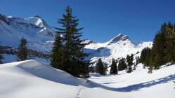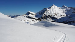 Dieser Tour ist eher geeignet für derjenige der die Stille geniesst. Die Abfahrten sind im oberen Bereich herrlich aber der oben erwähnten Plangäugraben muss gut eingeschneit sein, was heute zum Glück der Fall war.