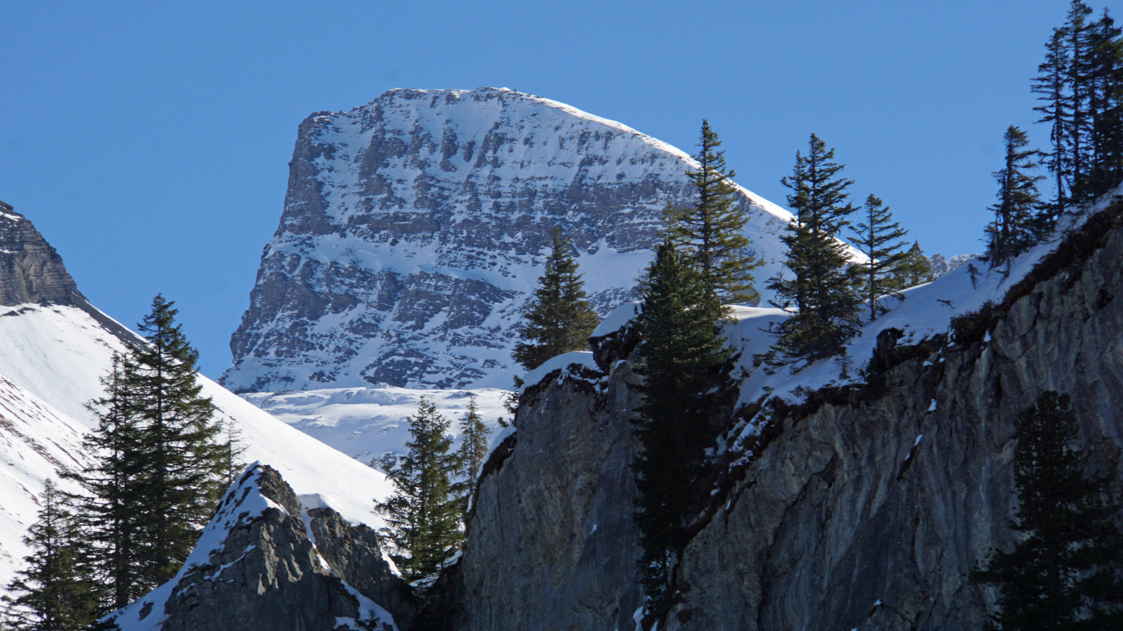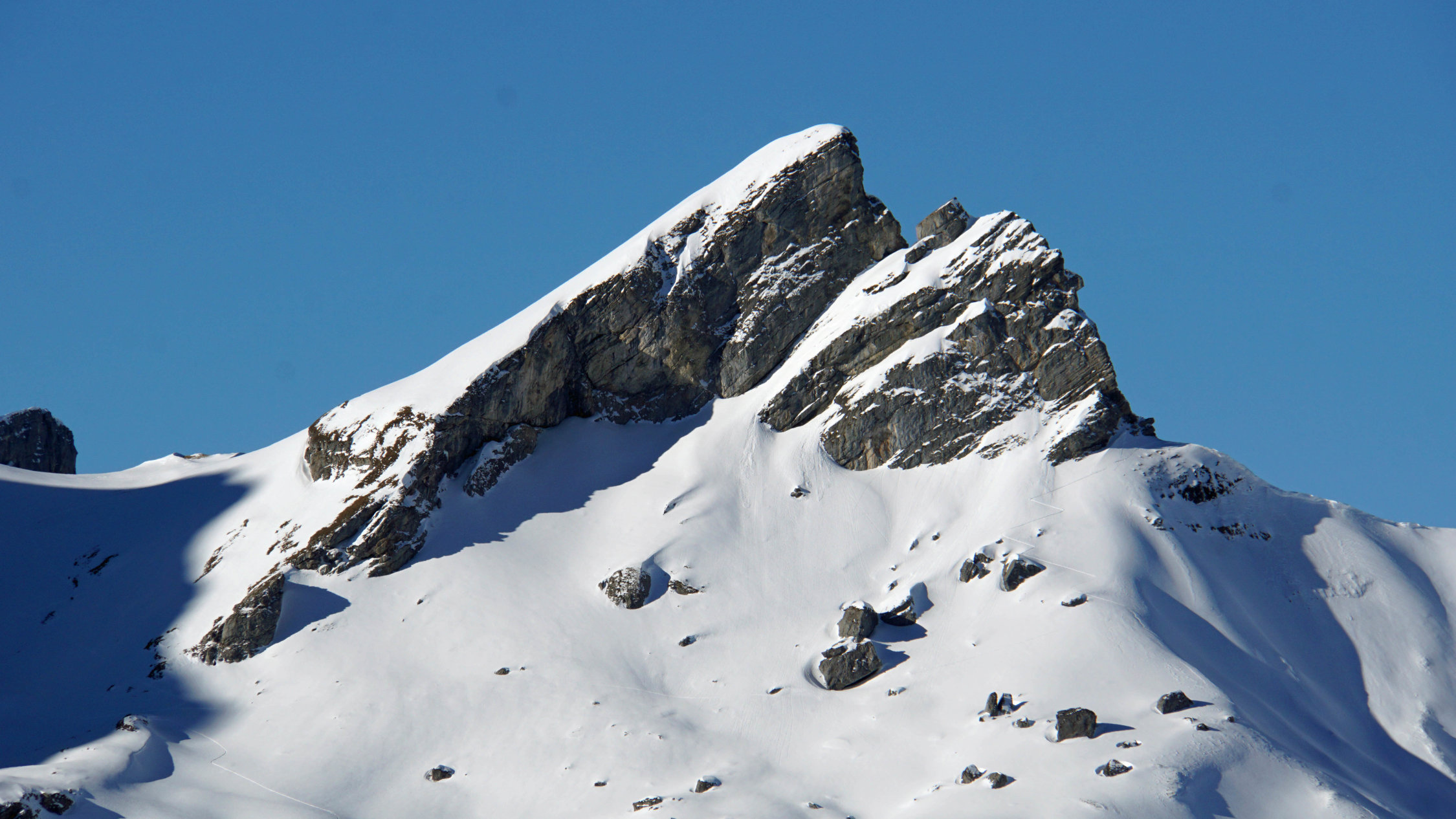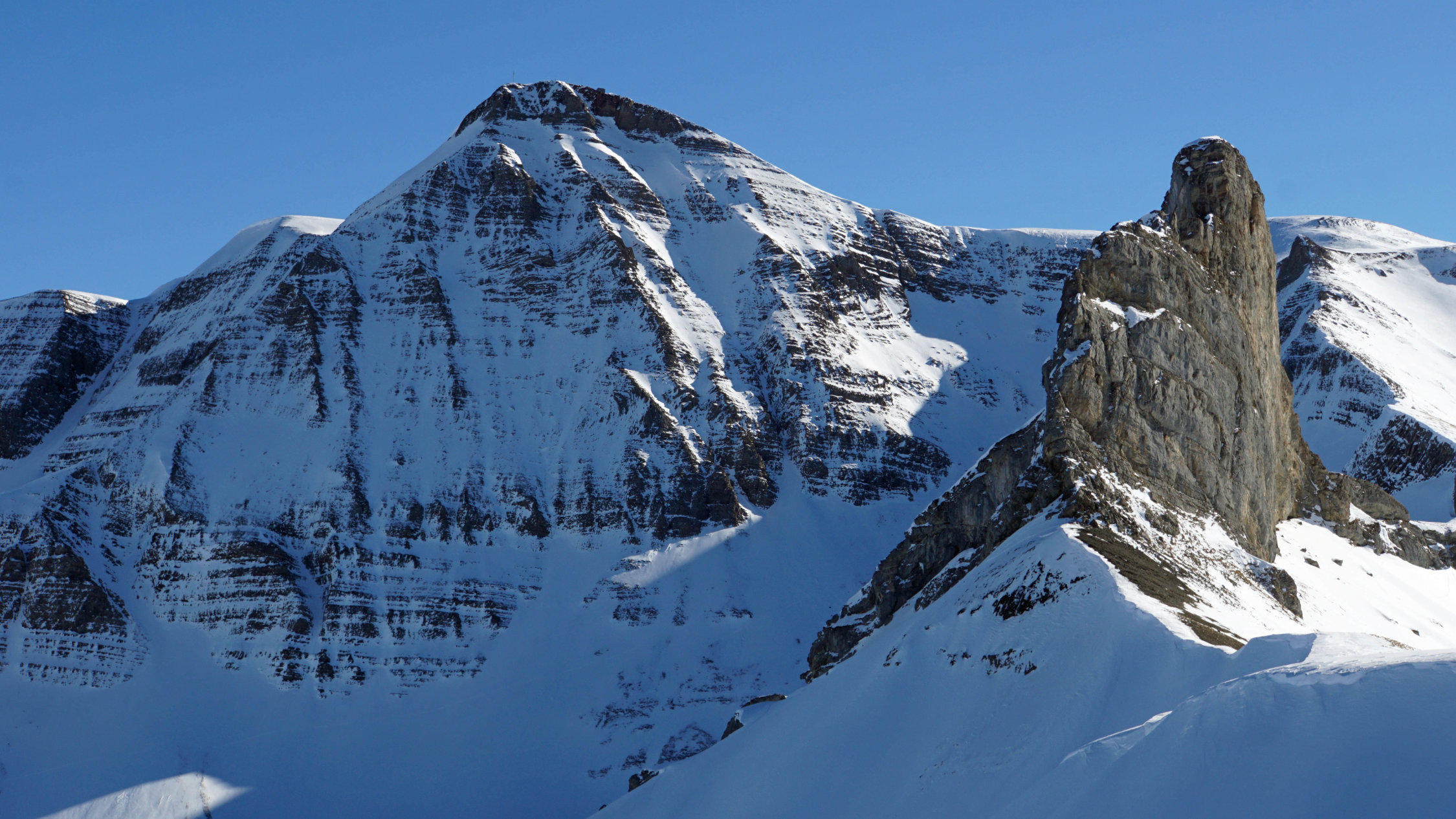 Gut aber der Gipfelhang war äusserst mühsam wegen den hüfttiefen Schnee wo man stets wieder tief einsank. Ich habe mich bis ganz kurz vor dem Gipfel durchgekämpft. Die letzten paar Metern schienen mir zu riskant da bei einen eventuellen Schneerutsch dort direkt über die Ostwand runtergeht. Wegen den hohen Temperaturen eben besser auf den letzen 2-3 Höhenmeter verzichten.