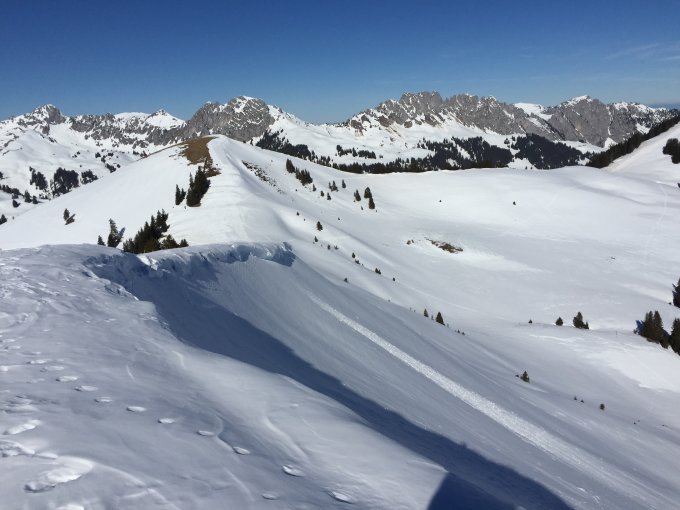 Familientürli bei angenehmen Bedingungen und guten Sulzschnee. Heute etwas bewölkt, aber wir wollen uns nicht beklagen. Trotz frühlingshaften Bedingungen noch gut machbar. Teilweise kommt die Matte bereits zum Vorschein und muss umlaufen bzw. umfahren werden. Kurz vor dem Gifel ein aperes Stück. Schöne lohnende Tour mit schöner sulzigen Abfahrt.