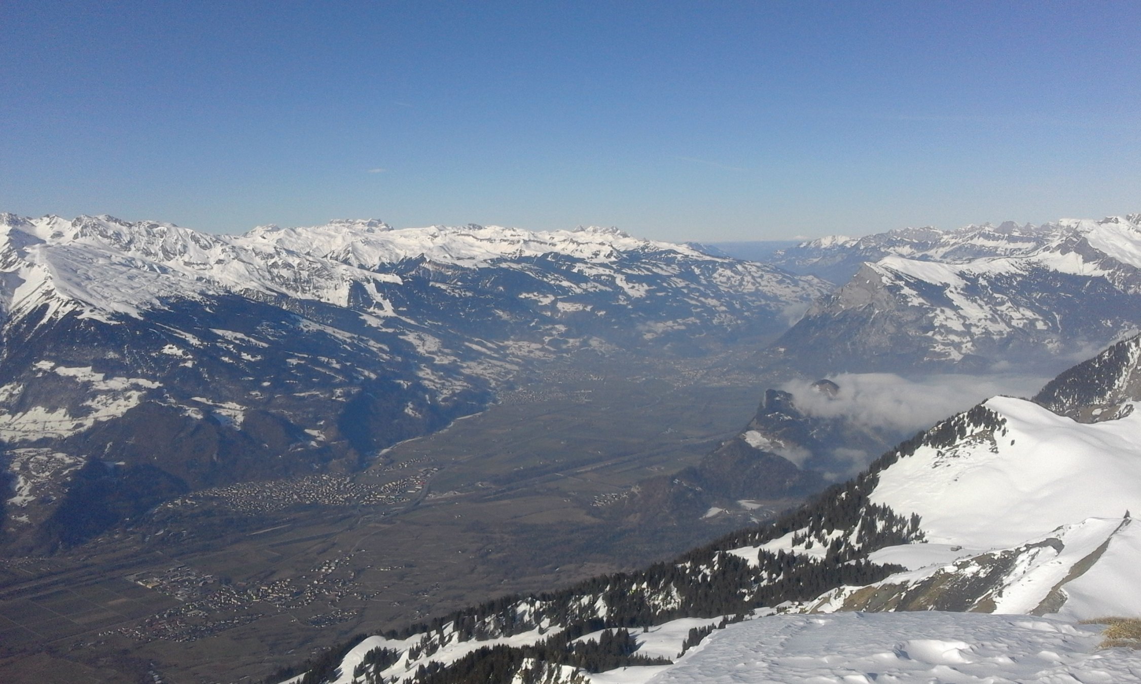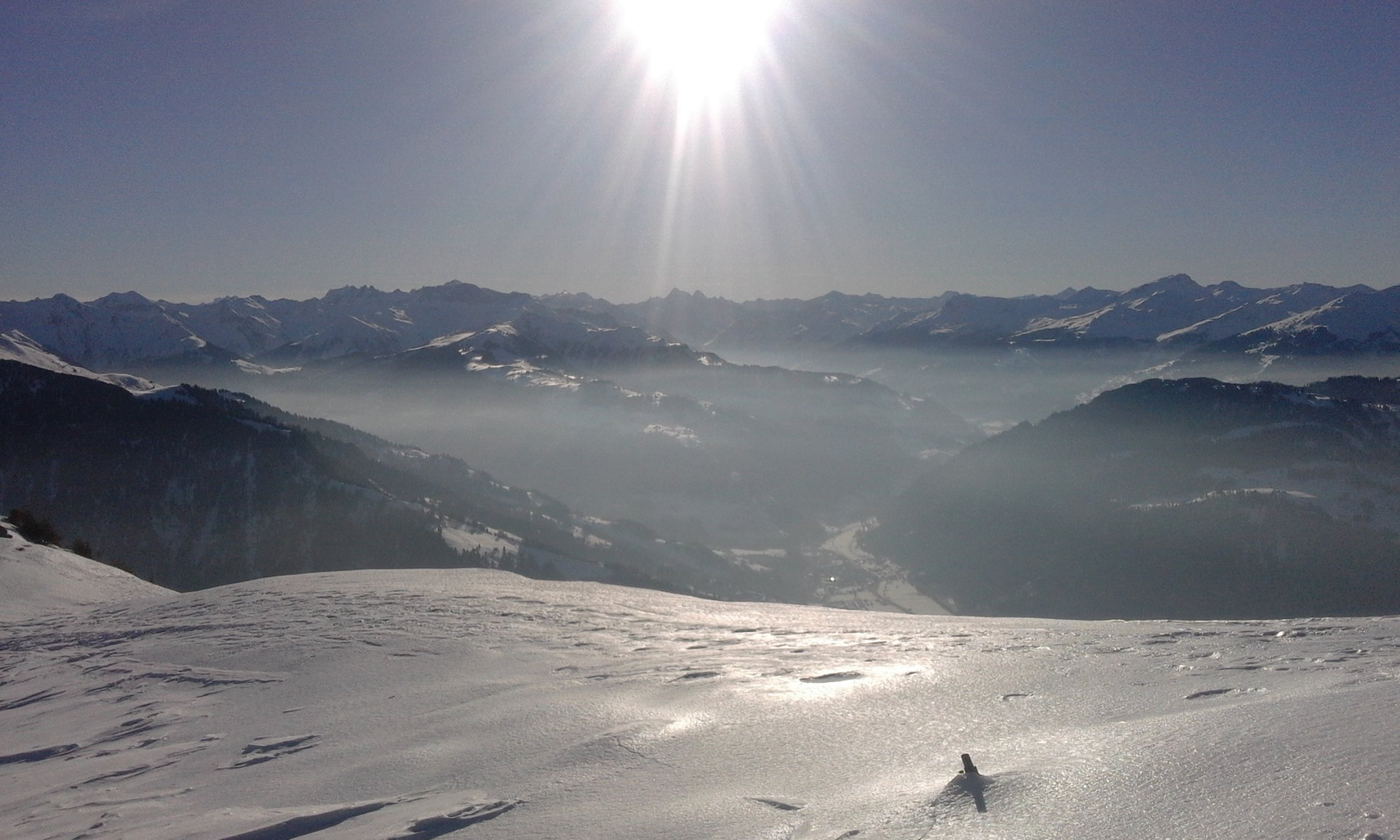 6:30 im Dorf gestartet, Aufstieg brauchte ab Sadrein etwas Nerven, hart und glasig. Mit Harscheisen, immer mal wieder retour gerutscht, neben der Spur meist besser aber auch nicht optimal da wegen hartem/unebenem Untergrund wenig Kontaktfläche. Lag evt. auch noch am breiten Ski.