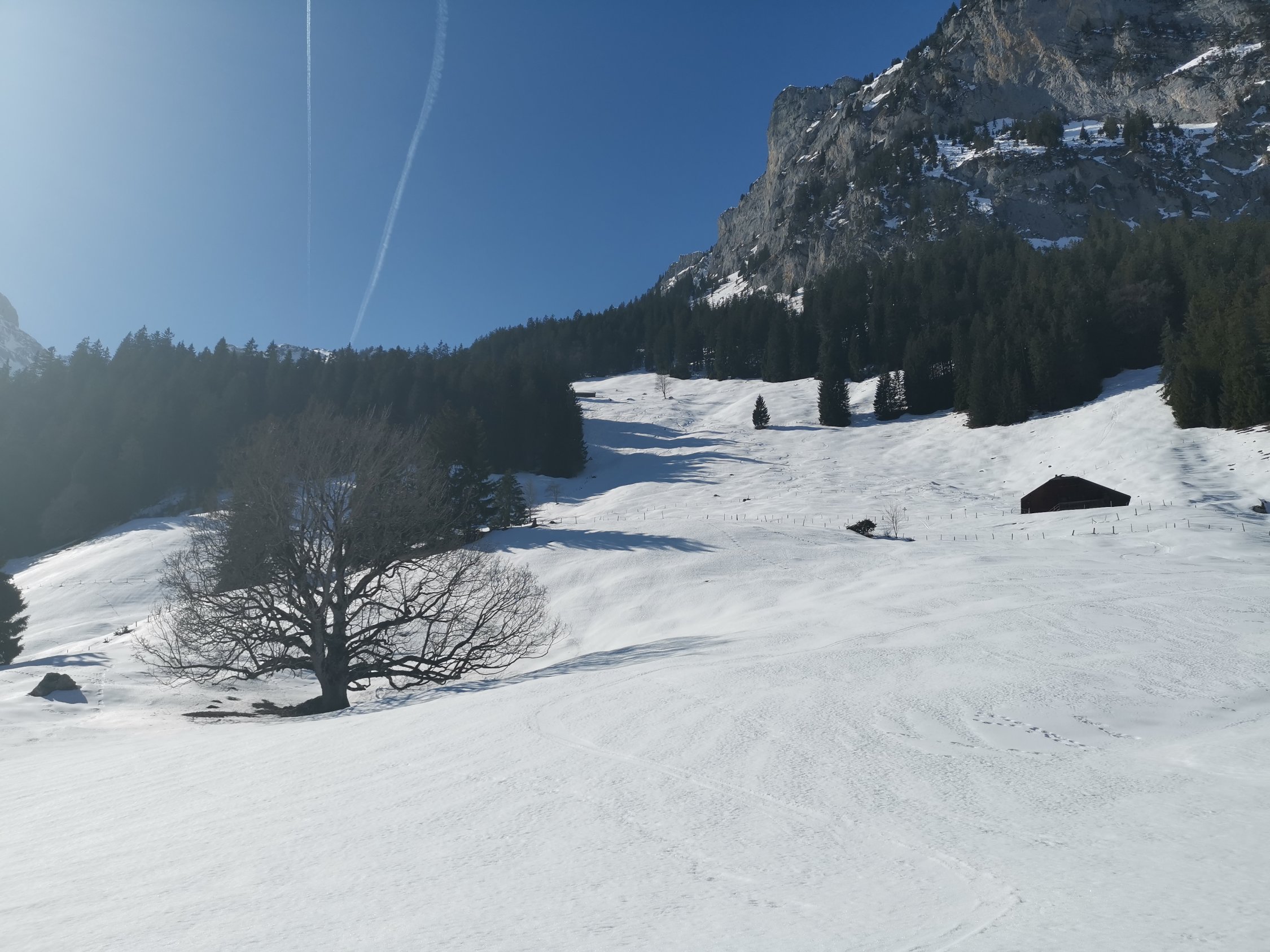 Die Felspassage ins Wintertäli ist vermutlich nicht für alle geeignet. Sarke Sonneneinstrahlung bei den Felsen, also besser vor 12 dort runter fahren.