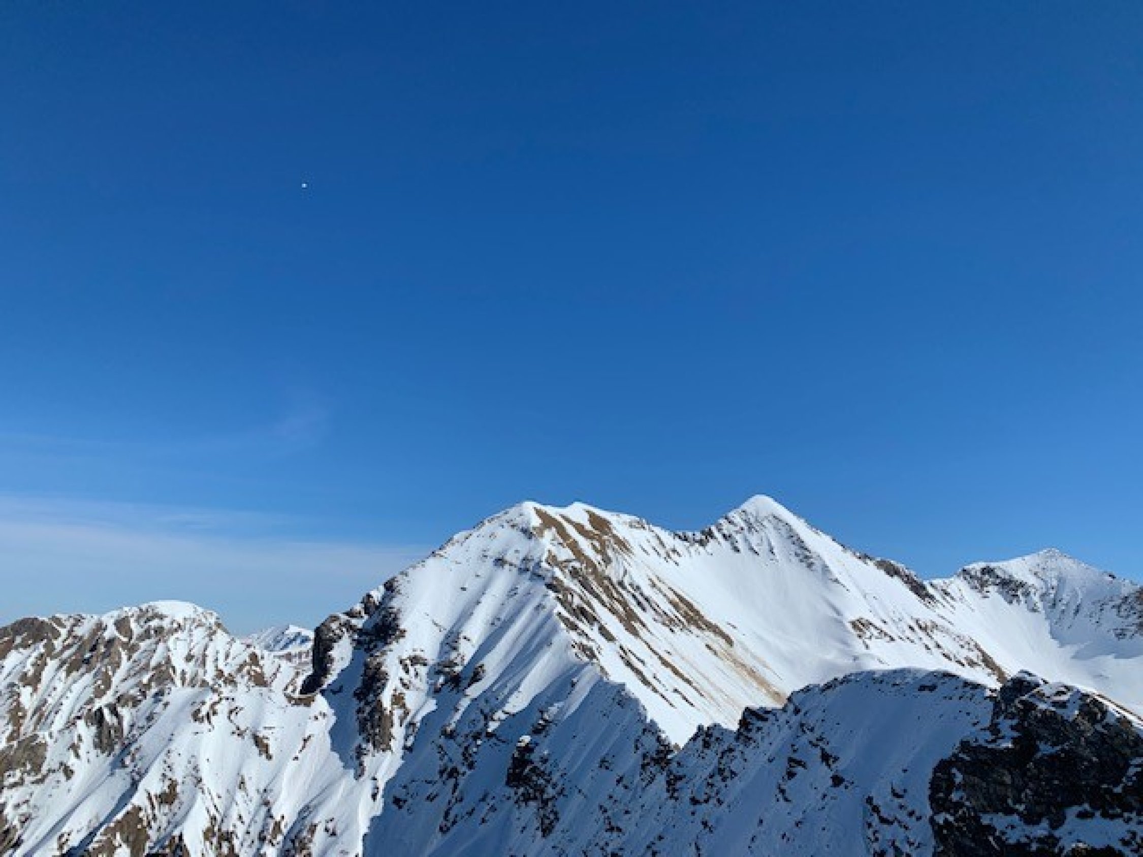 Tolle Verhältnisse auf der ganzen Tour. Sehr schöne Aufstiegsspur, in welcher es ohne Harscheisen machbar war. Auf dem Gipfel windstill und angenehm warm.