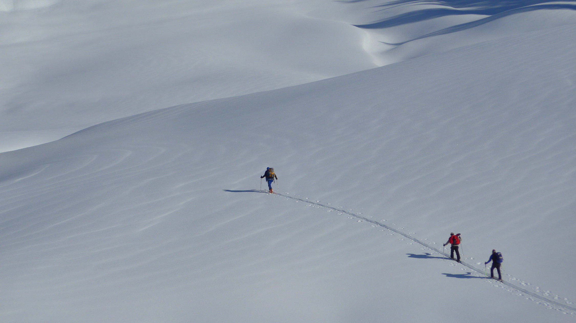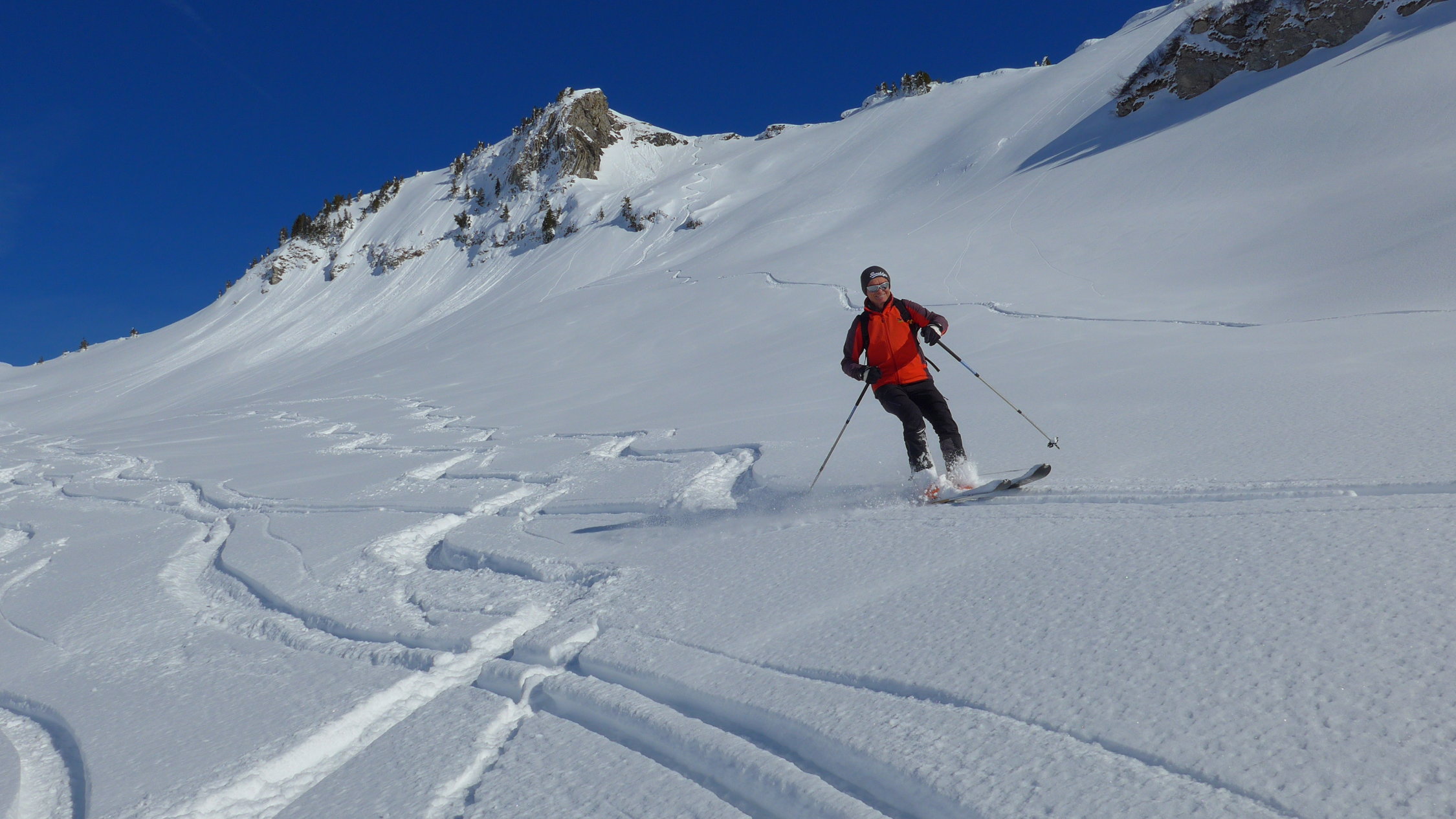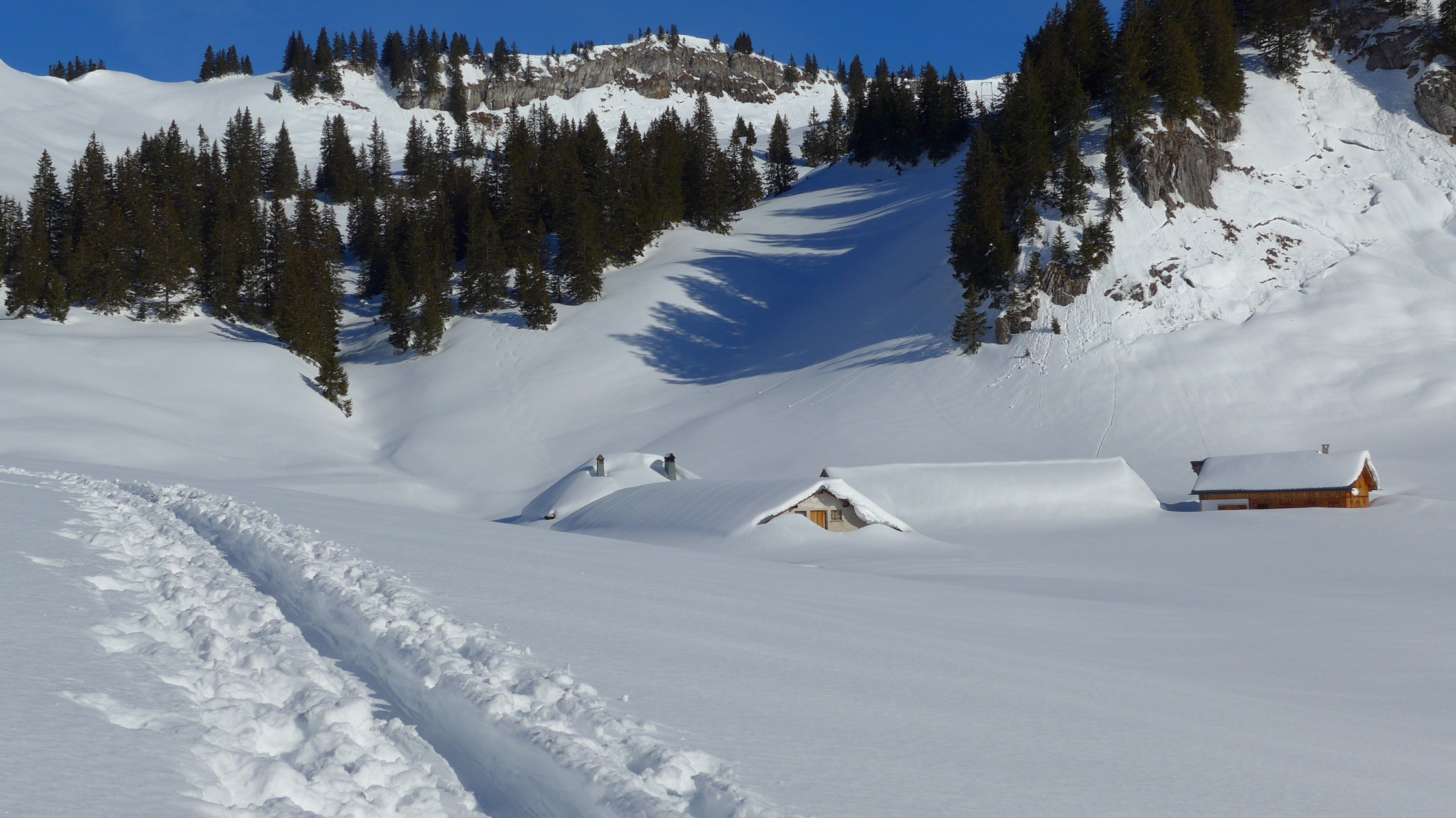 Die Mellenköpfe zwischen dem Hohen Freschen und der Matona haben bei Genusstourengehern einen hohen Stellenwert. Hier kann man aus dem Skigebiet Laterns starten, mit der Tourenkarte alle Lifte einmal fahren und so auf mittlerer Höhe des Nob-Schleppliftes losmarschieren. Schnell ist die Untere Saluveralpe erreicht. Der weitere Anstieg über das Freschenhaus ist herrlich sonnig und ein wunderbares Wintermärchen. Lange könnte man am Gipfel noch sitzen, doch die Mellenköpfe sind heute ein Pulverschneetraum. Viel zu schnell ist man wieder unten, beim kurzen Gegenanstieg nach der Saluveralpe und der Schlepplift bringt uns wieder zurück ins Pistengebiet.