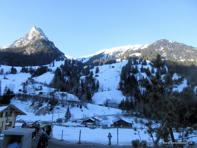 Sonnig und warm. Start bei der Talstation Ramslauenen. In Ramslauenen bei Start im Schatten war der Schnee hart gefroren. In der Sonne dann griffiger. Fussanstieg mit hart gefrorenen Tritten, Vorsicht geboten.