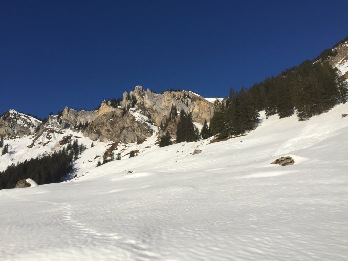 Aufstieg ohne Harscheisen gut machbar.