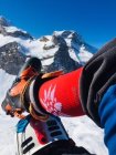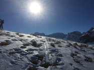 Nach der Luftseilbahn Bergstation Lawinenkegel zu überqueren.